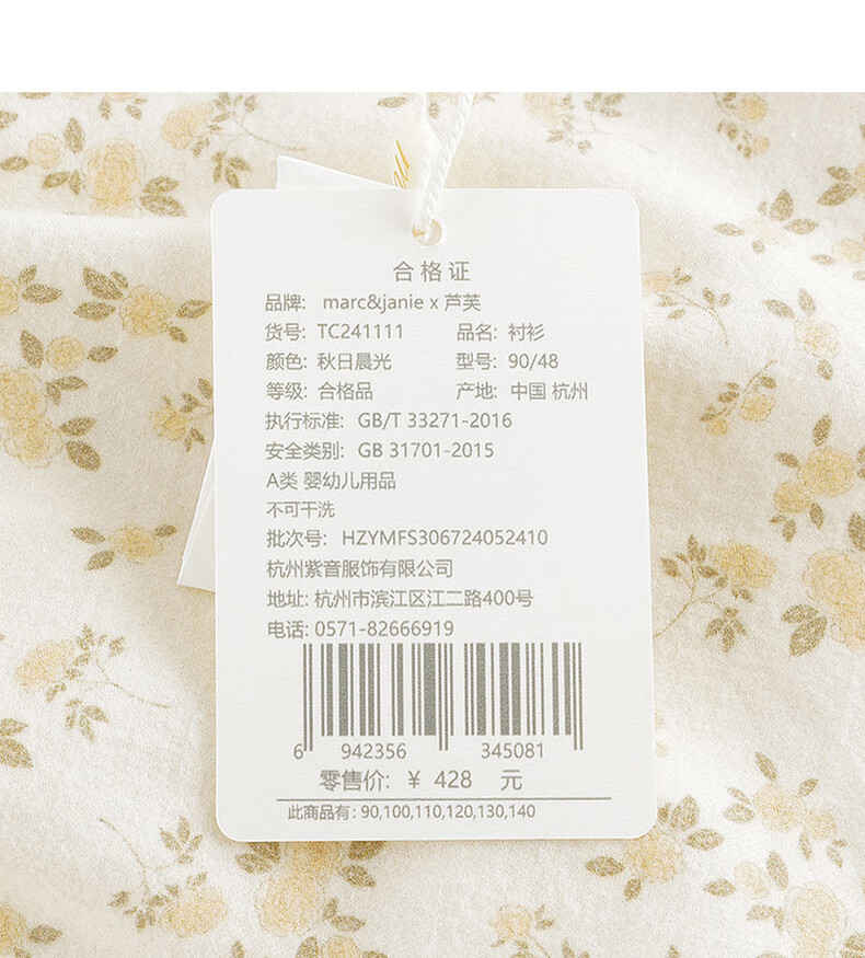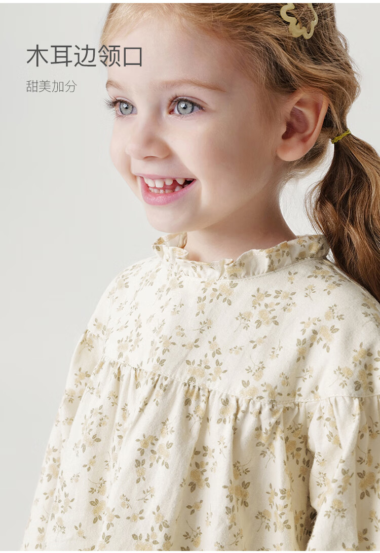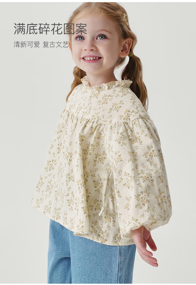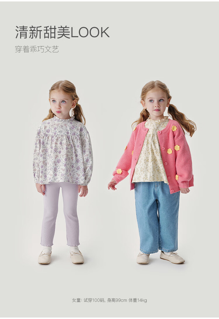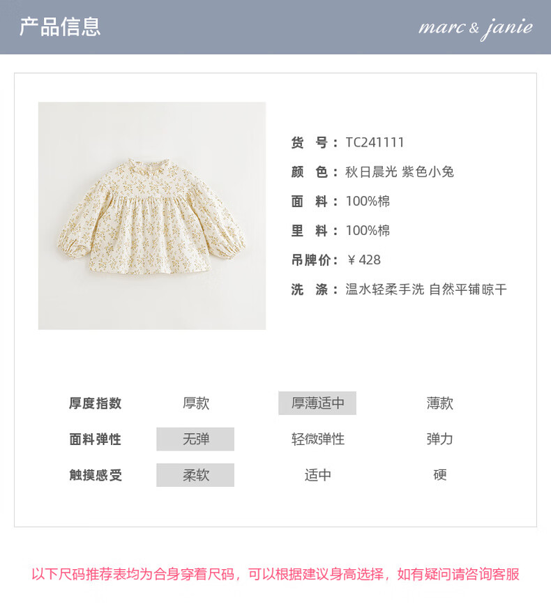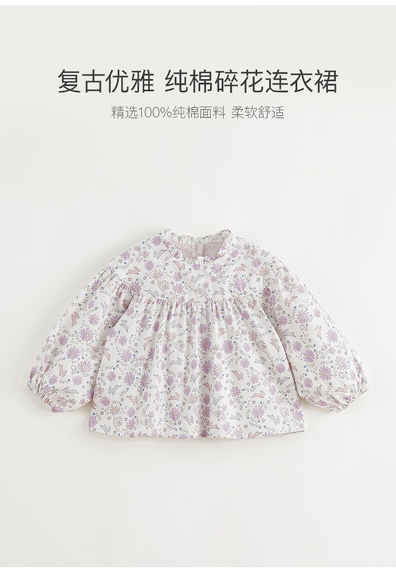 MARC&JANIE Girls' Full-soled Floral Cotton Shirt Spring and Autumn New Style 241111 Purple Bunny 100 (recommended height 91-100)