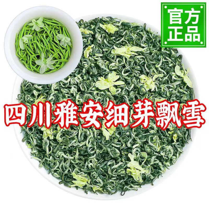 Fragrant food Ya'an Mengding mountain tea buds fried flowers Jasmine Piaoxue 2024 new tea Jasmine tea strong aroma type Sichuan Ya'an Mengding fine buds Piaoxue 520g mellow and refreshing
