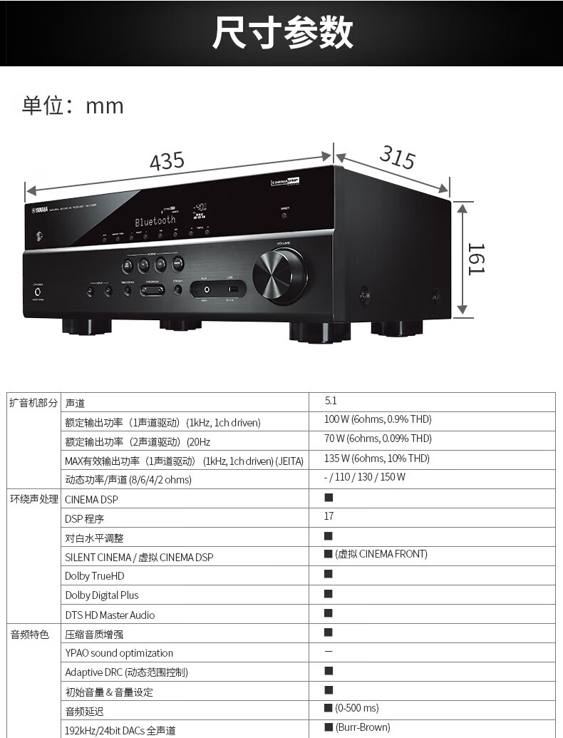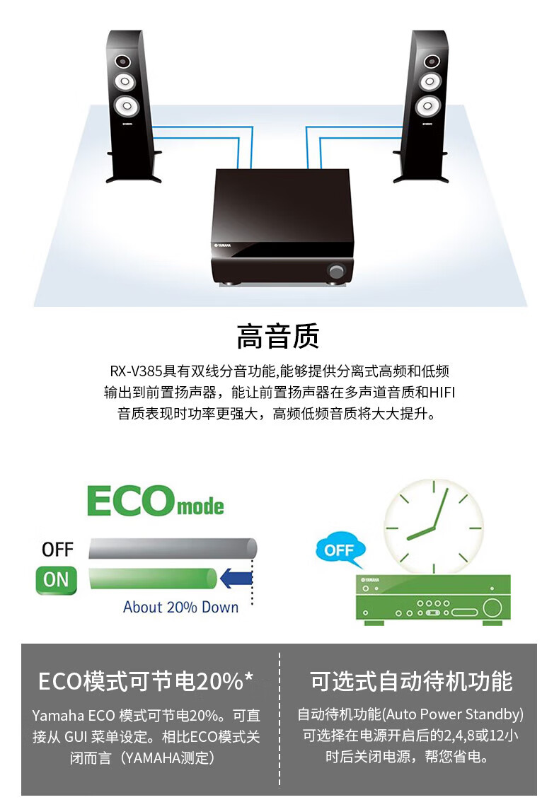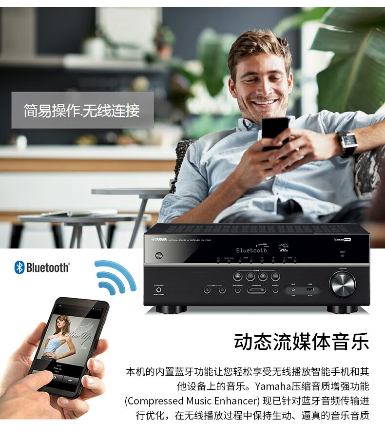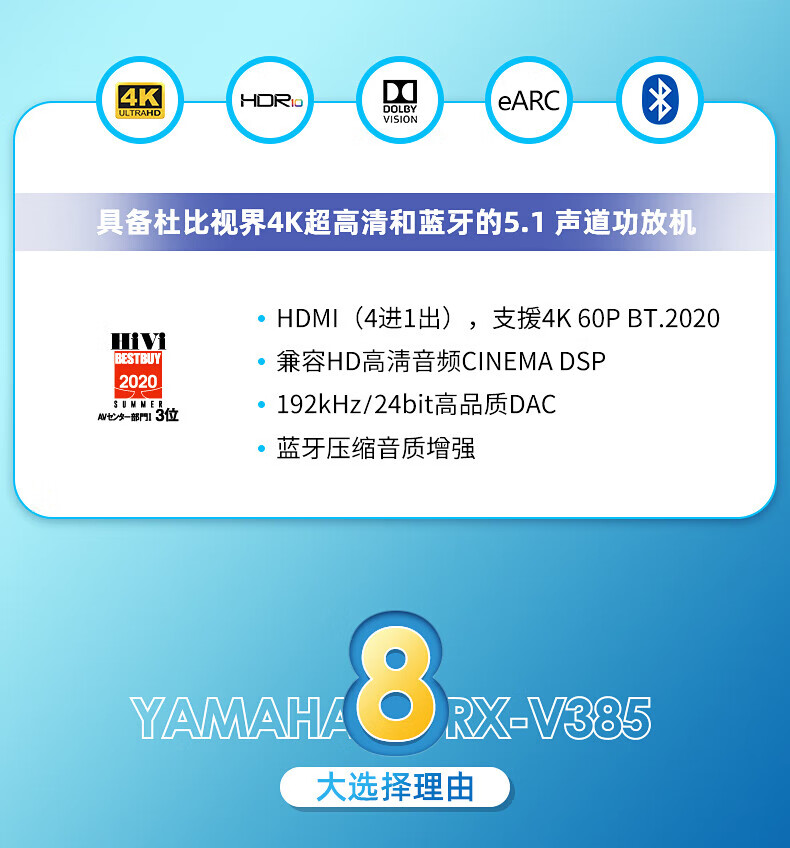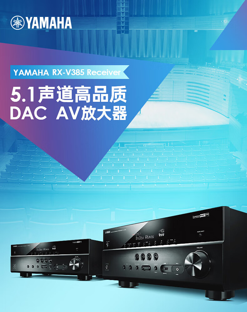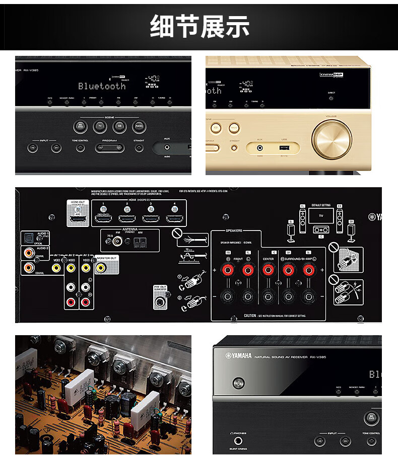 YAMAHA RX-V385 4K home high-power home theater amplifier Bluetooth radio amplifier multi-function amplifier HDMI high-definition RX-V385 gold