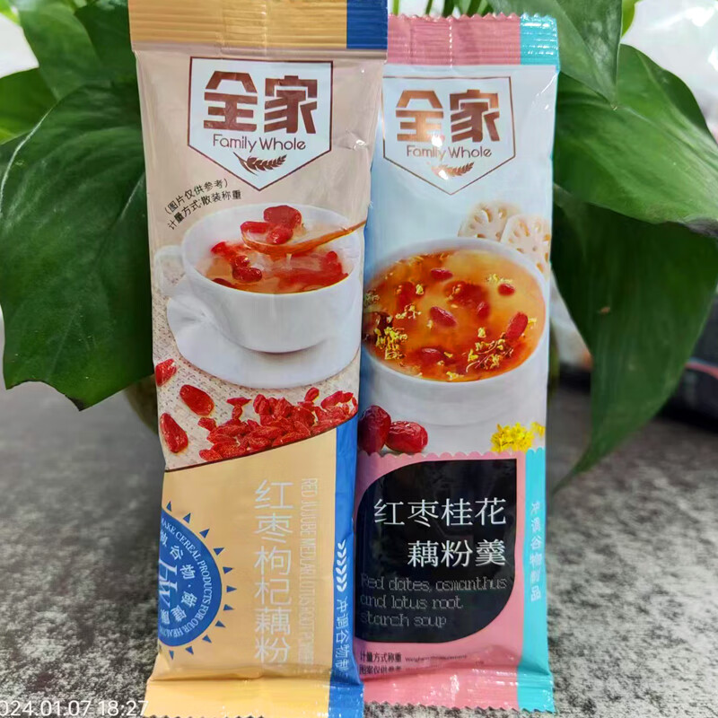 FamilyMart osmanthus, nuts, lotus root powder, red dates, wolfberry, cereals, lotus root, small package instant breakfast powder snacks, osmanthus nuts + red dates and wolfberry (lotus root powder mixed with 14 pieces)