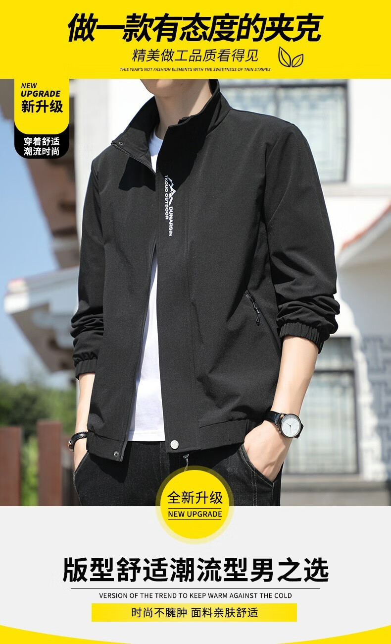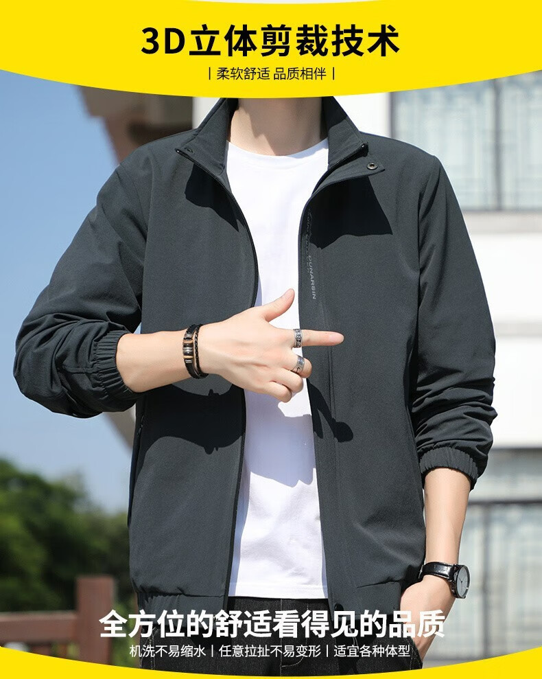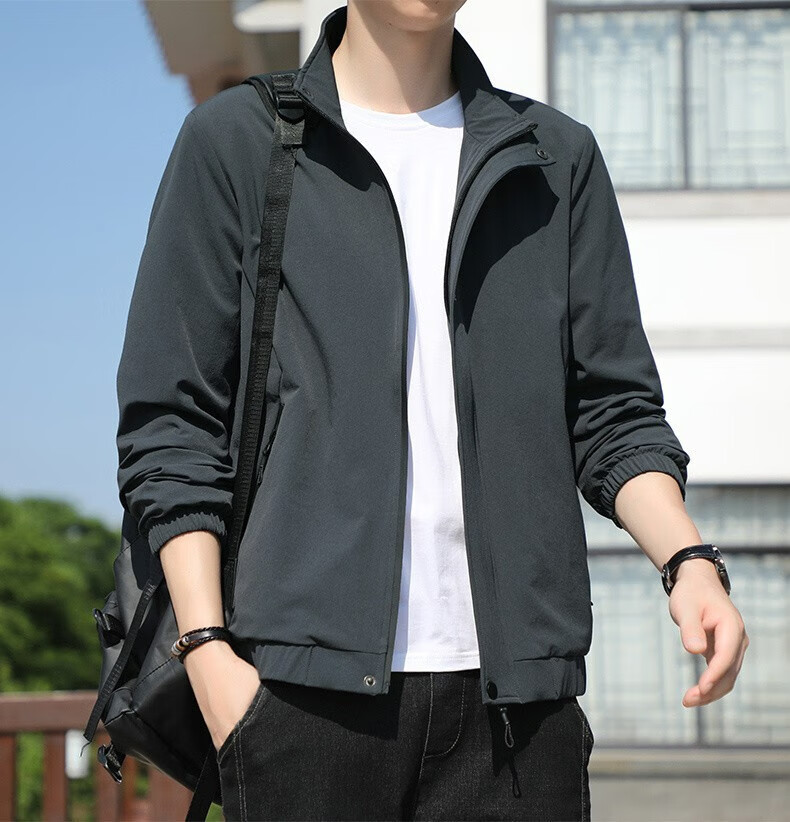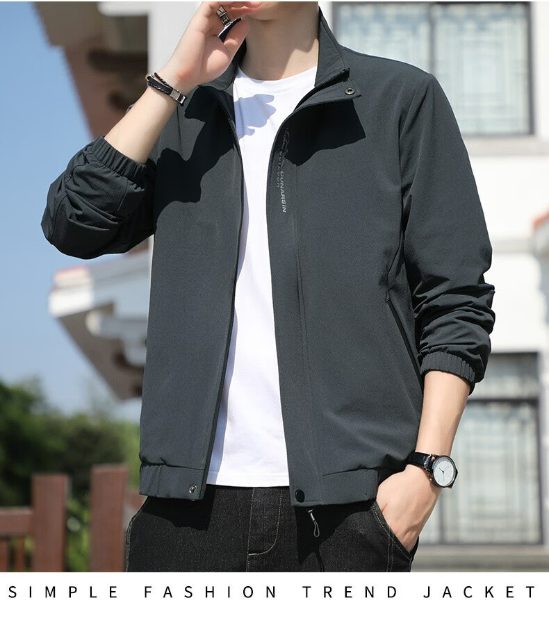 Woodpecker Jacket Men's Jacket Tops Men's Spring and Autumn New Business Casual Men's Wear Young and Middle-aged Stand-up Collar Jacket Clothes 9980 Dark Gray XL