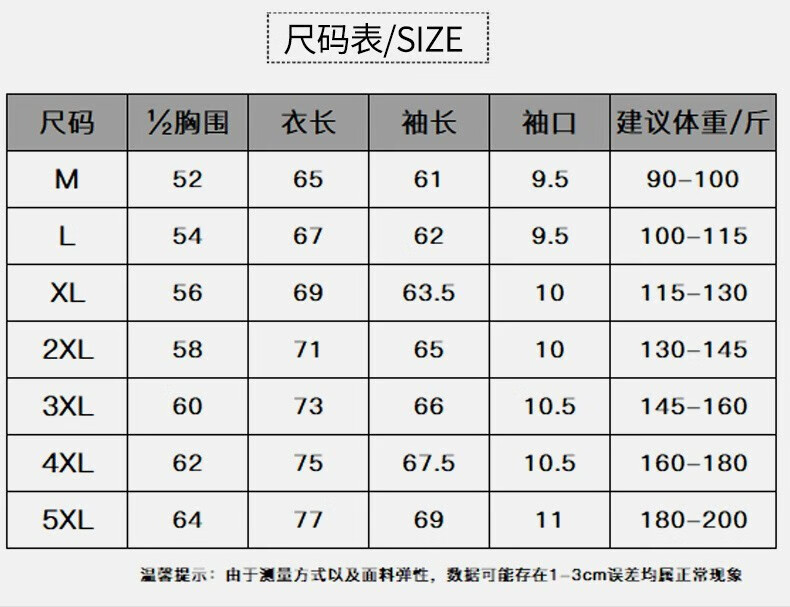 China (cm) 165 / 88-90 170 / 96-98 175 / 108-110 180 / 118-122 185 / 126-130
