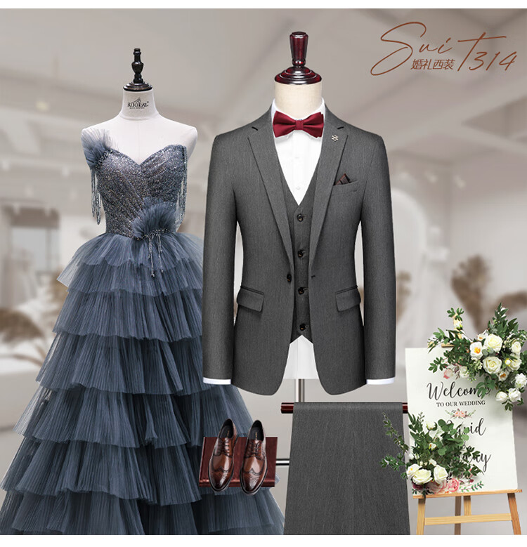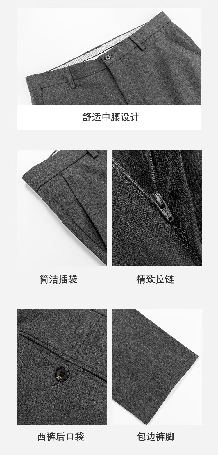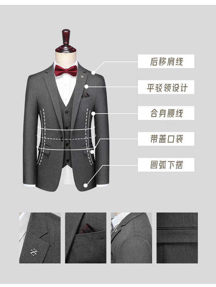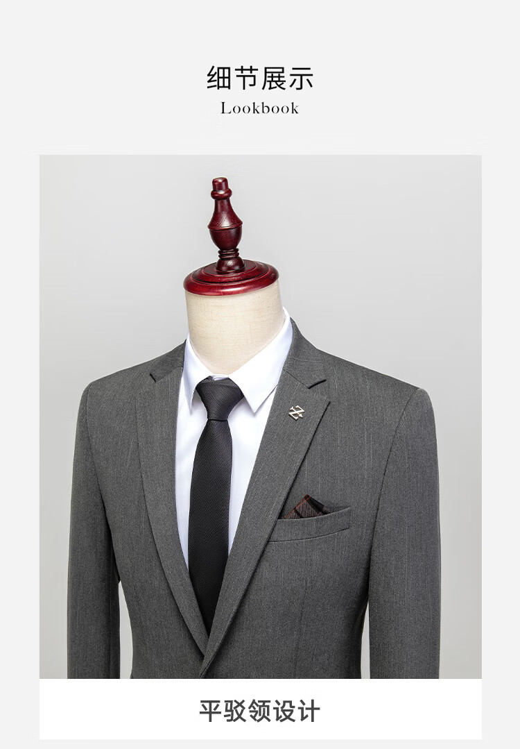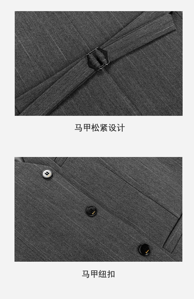 ROMON suit men's striped slim and handsome groom's wedding dress jacket men's British style test suit men's dark gray suit + trousers + vest + gifts 50/L