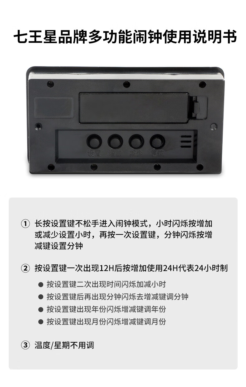 Seven Kings Seven Kings electronic timer desktop watch alarm clock for students to wake up artifact desktop clock with temperature perpetual calendar digital small alarm clock white 11.5*6 cm
