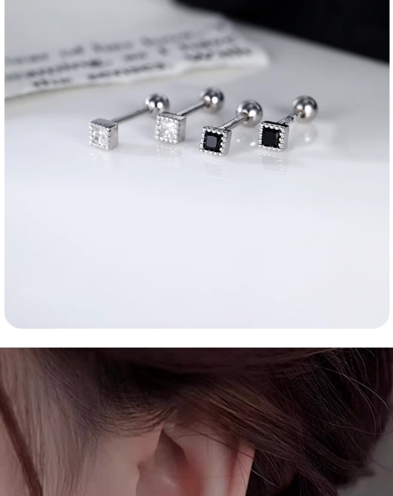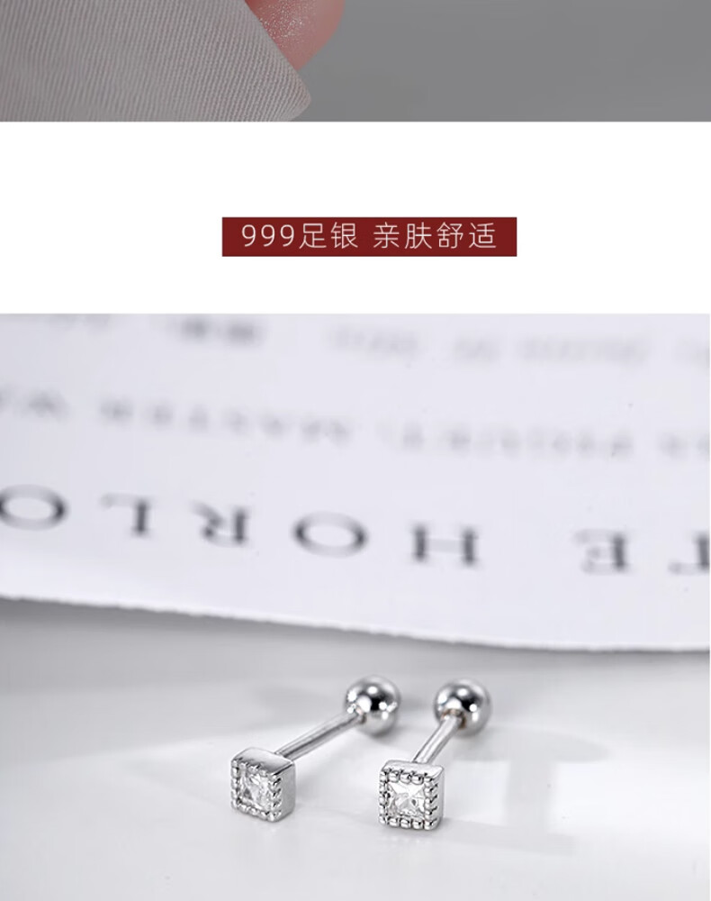 QMXD999 Pure Silver Earrings for Women, Screw Twist Buckle, No-Pick Earrings for Sleeping, No-Removal Earrings for Women, 2024 New Style, Not Easy to Allergy, 999 Pure Silver, Pair of White Diamond Screws