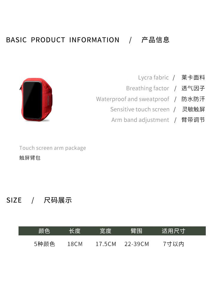 AGUACATE running mobile phone arm bag sports mobile phone arm bag unisex fitness mobile phone bag arm wrist bag red