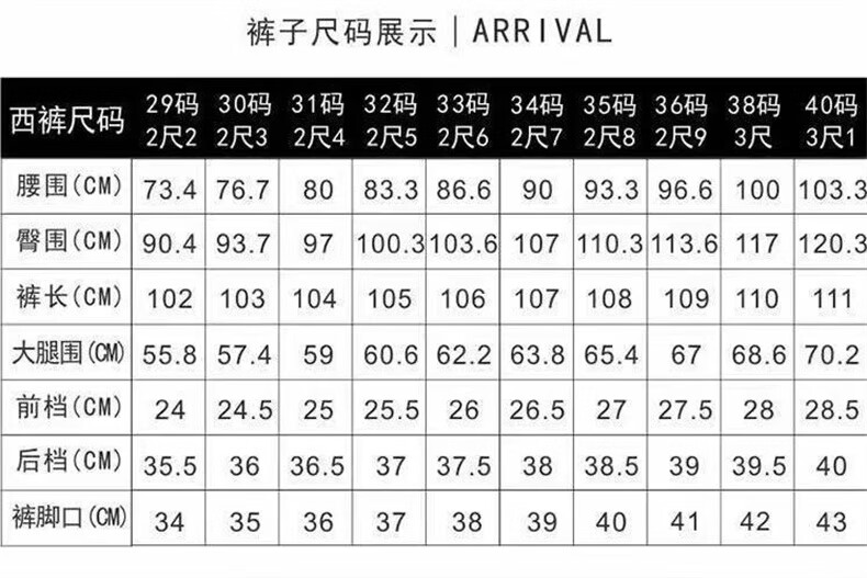 Outseam (cm) 99 cm 101.5 cm 104 cm 106.5 cm 109 cm