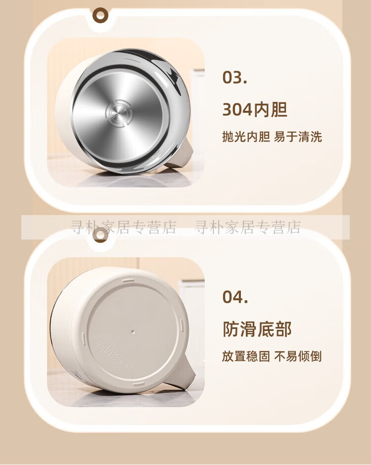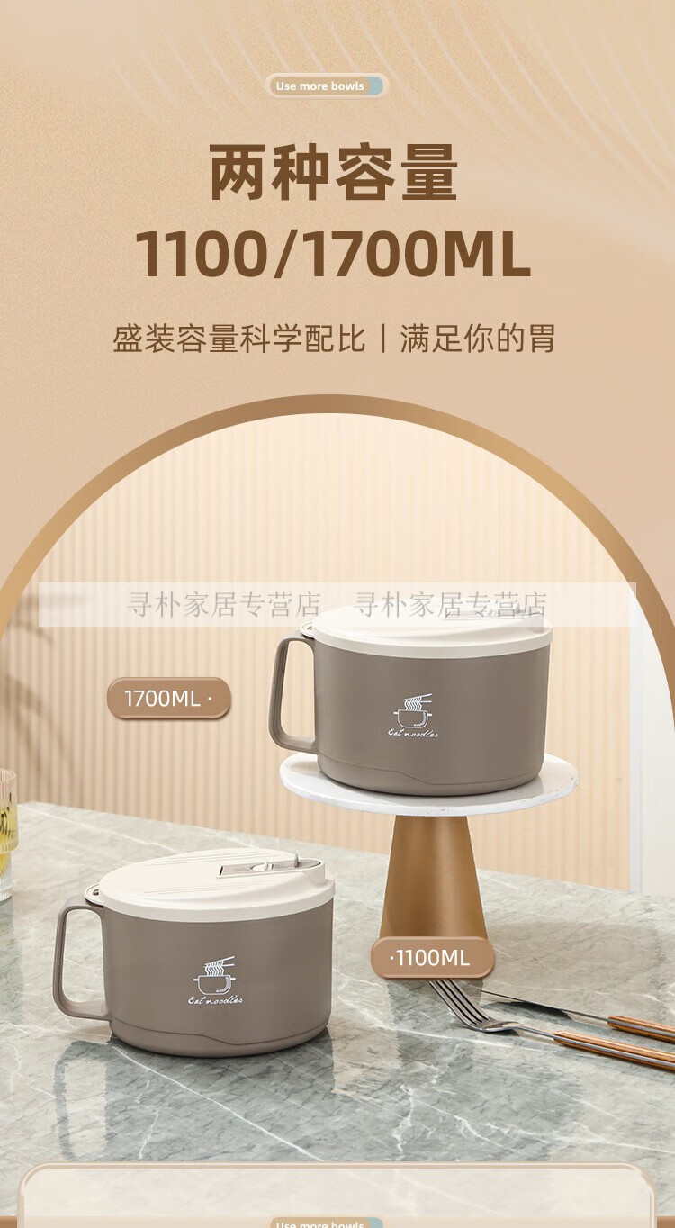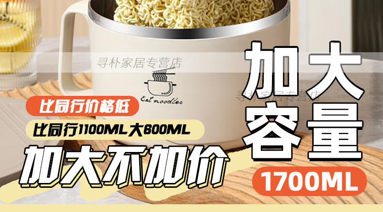 Shisuman 304 stainless steel instant noodle bowl with lid, large dormitory student canteen lunch box with rice basin, instant noodles can be drained, 1700ML large capacity, 304 liner, off-white