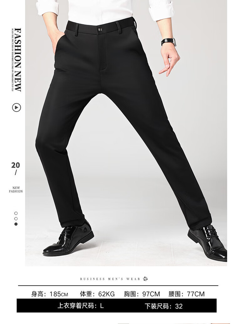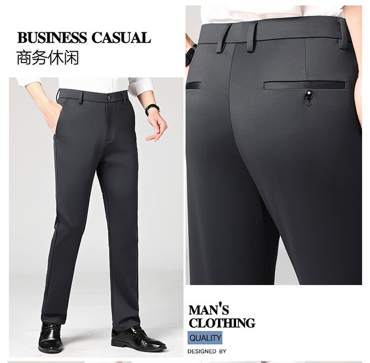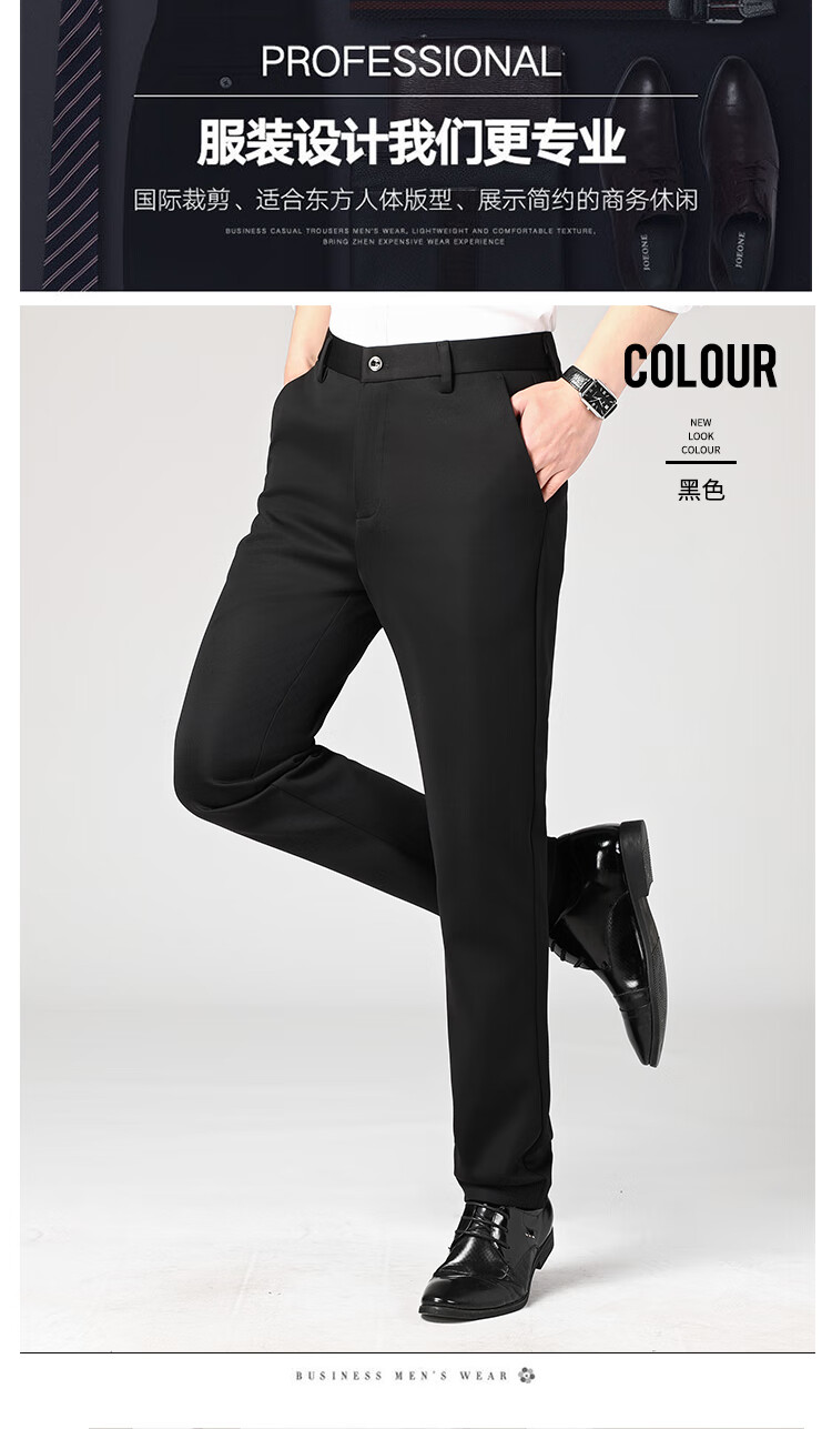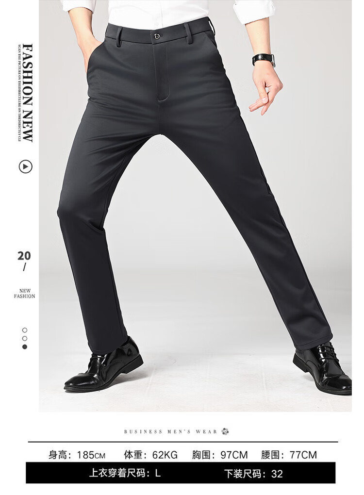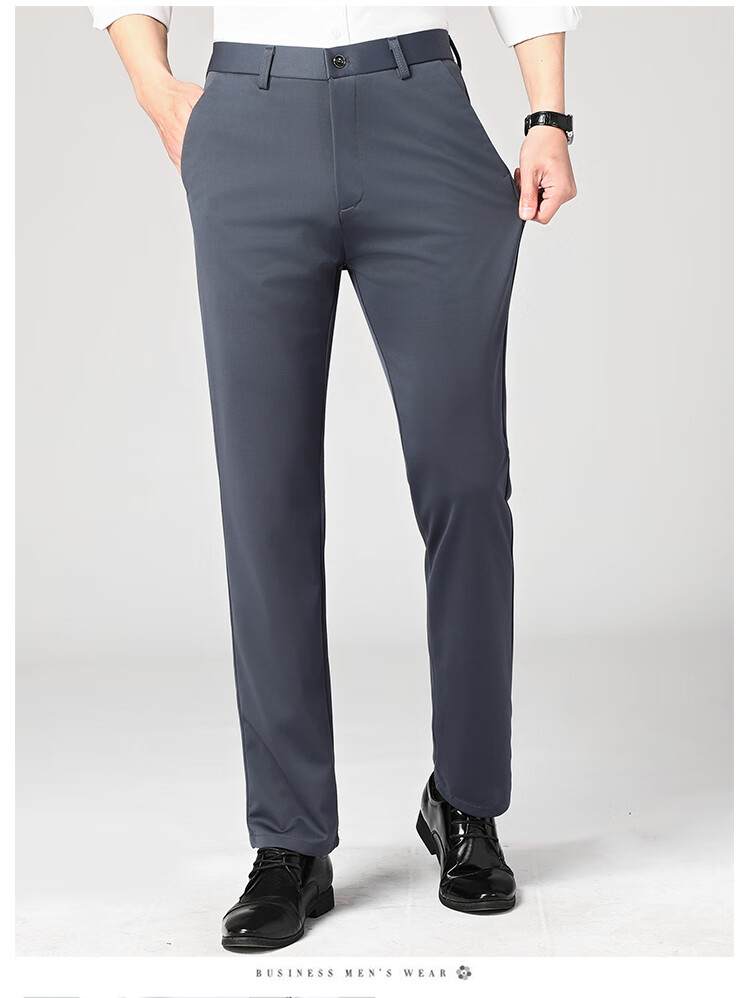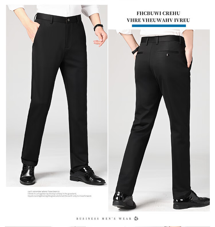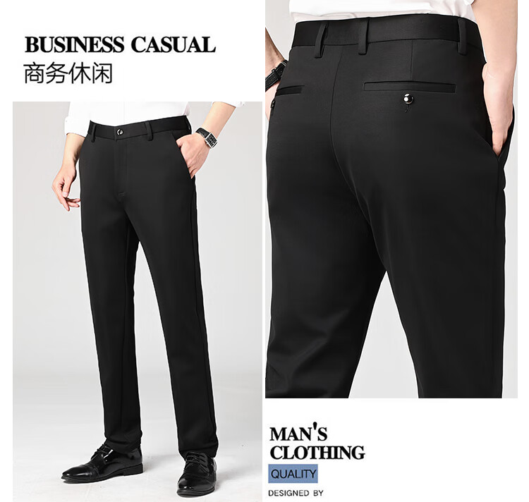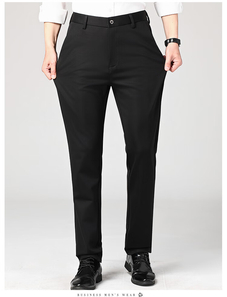 Lomon suit trousers for men spring and autumn business casual straight-leg no-iron trousers for men stretch suit trousers for men all-match trousers XK806 black single piece 32 (waist 2 feet 5)
