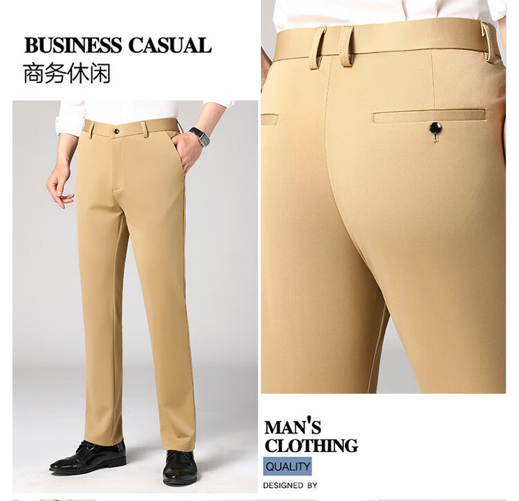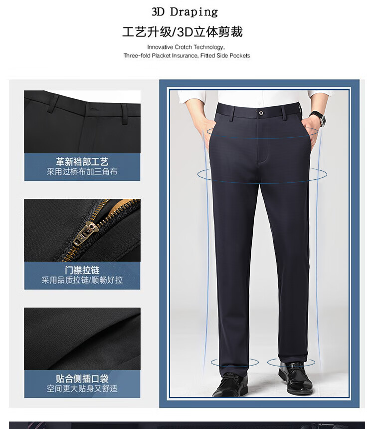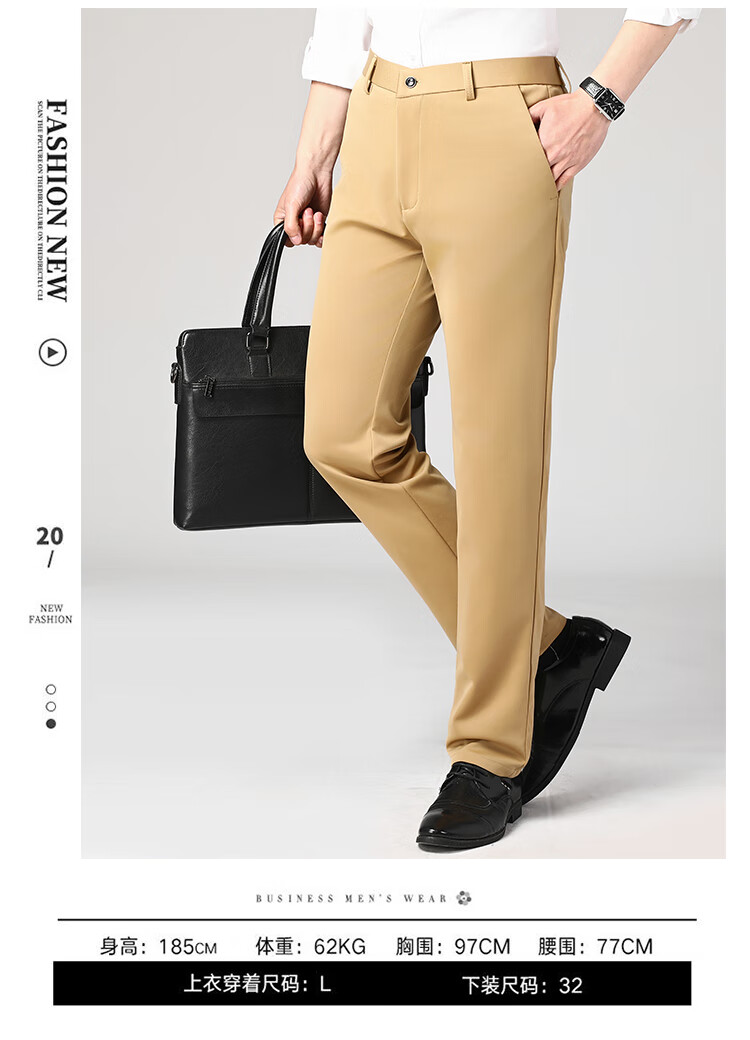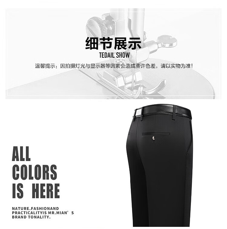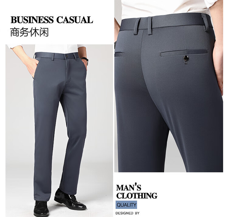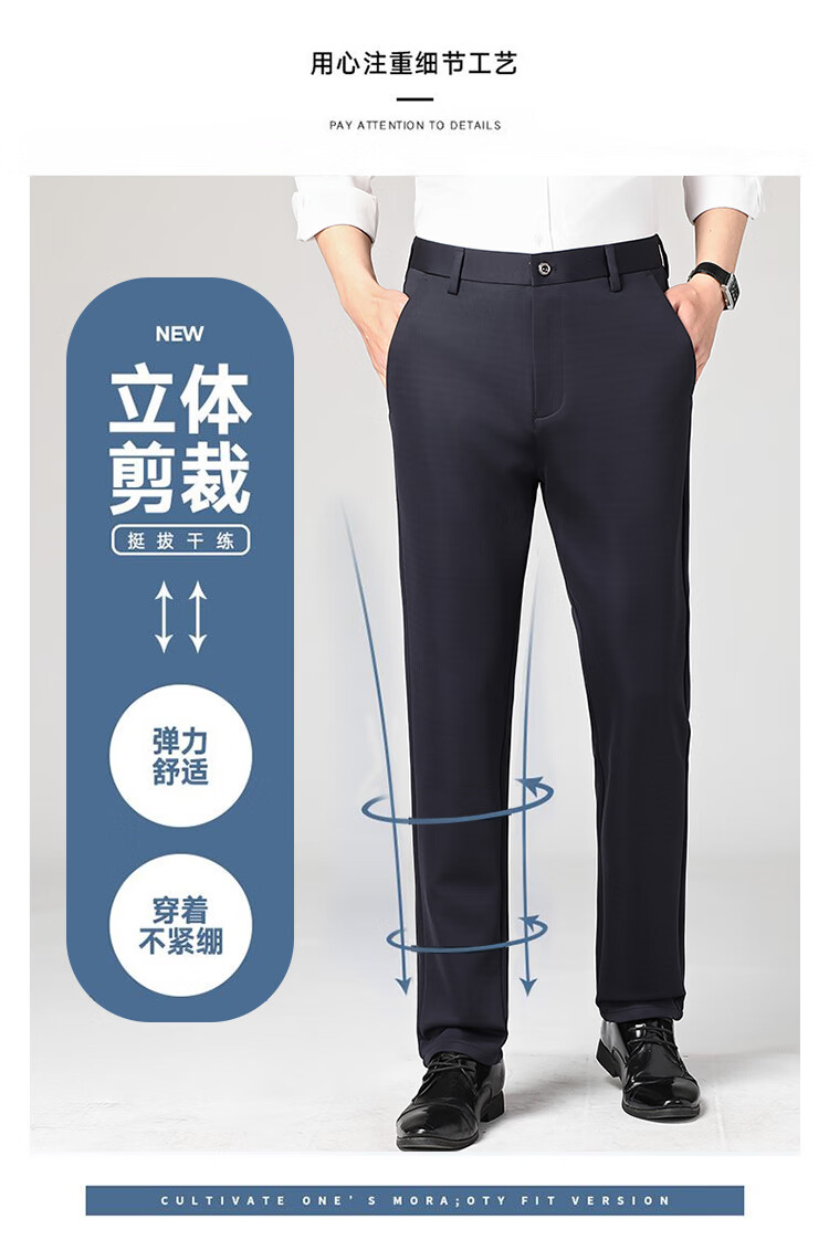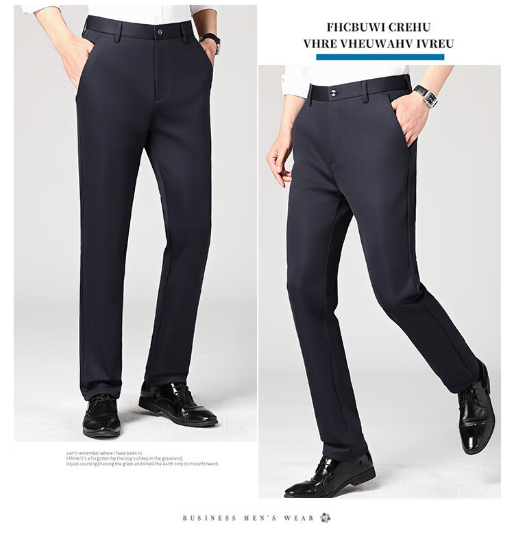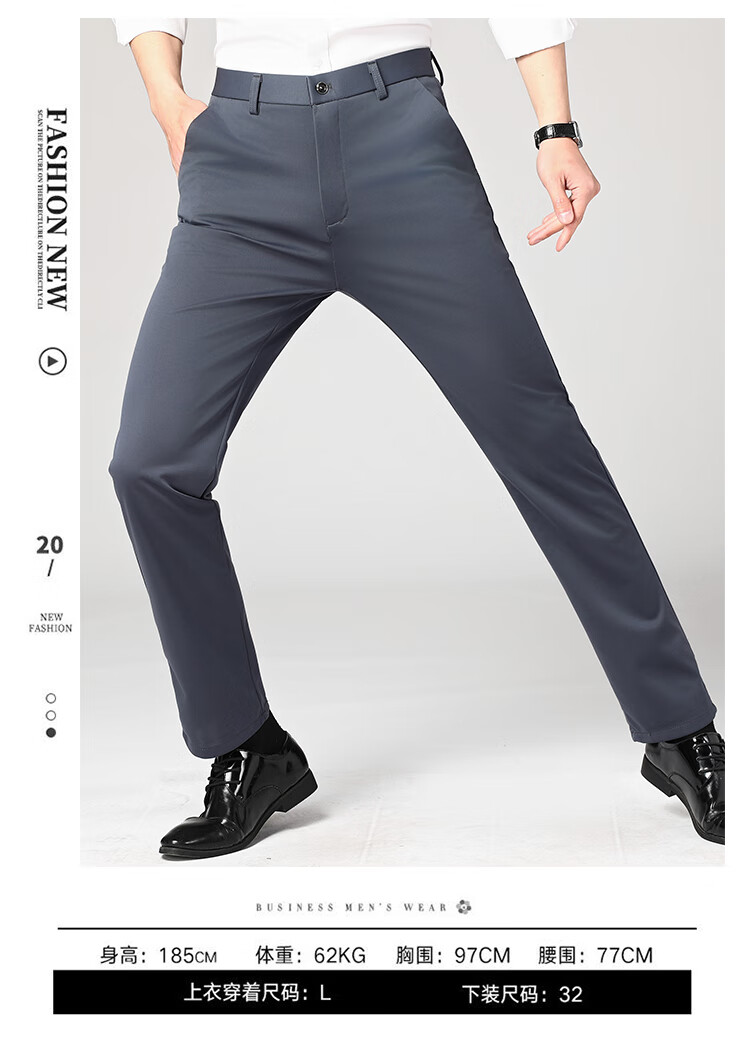 Lomon suit trousers for men spring and autumn business casual straight-leg no-iron trousers for men stretch suit trousers for men all-match trousers XK806 black single piece 32 (waist 2 feet 5)