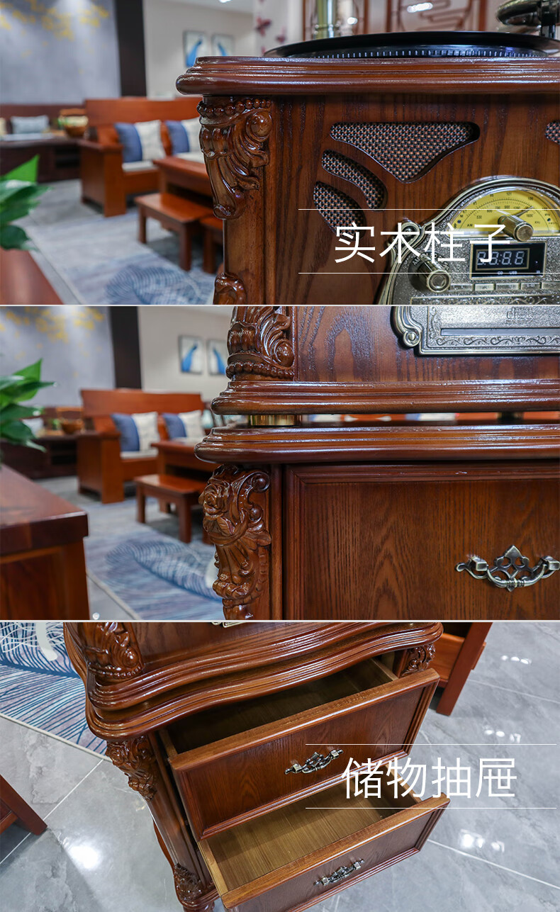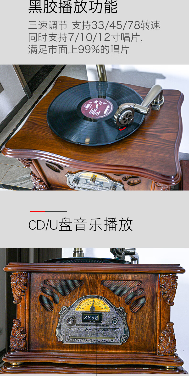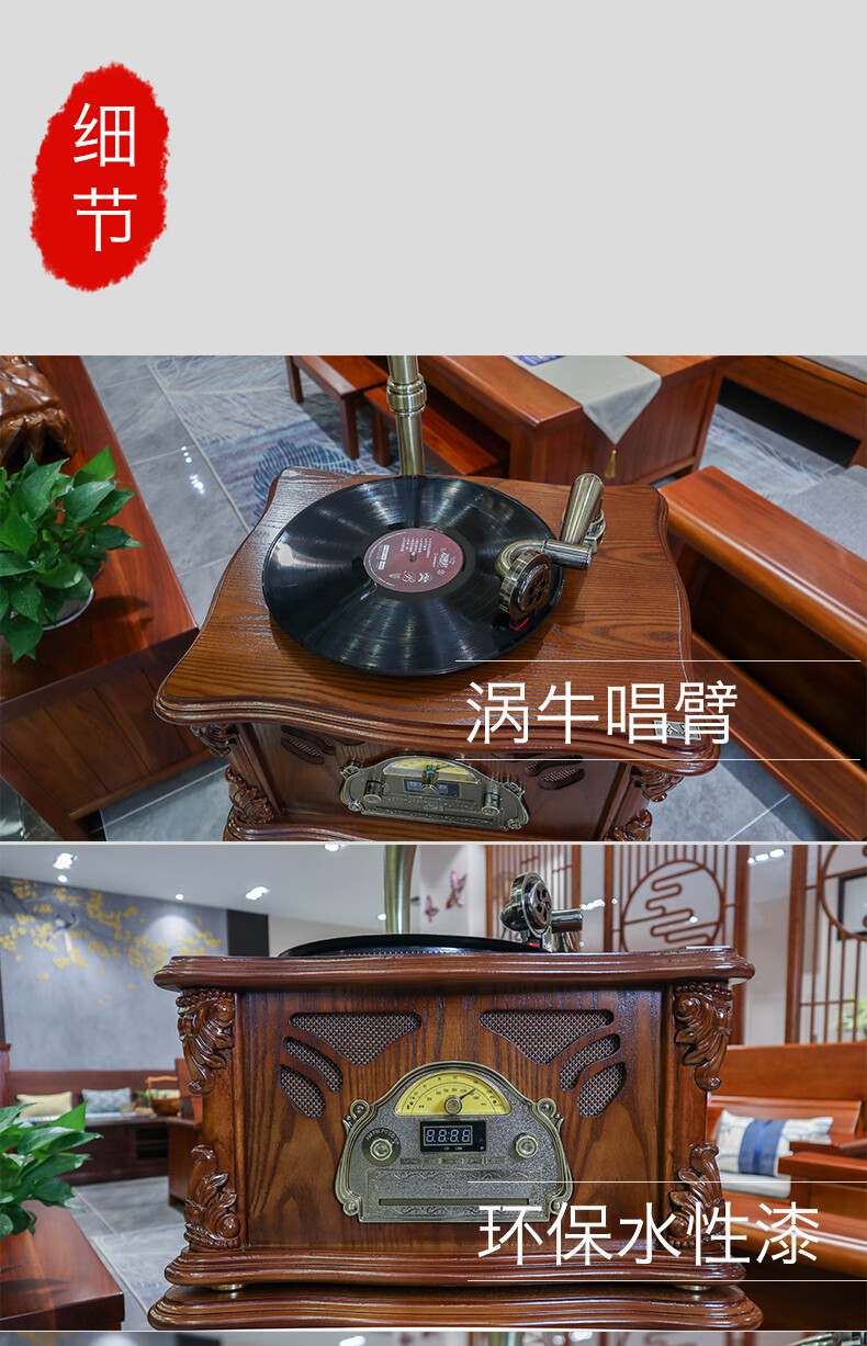 Jinmo retro phonograph living room American European Chinese vinyl record player old-fashioned antique karaoke gramophone CS16 brown-53cm copper speaker