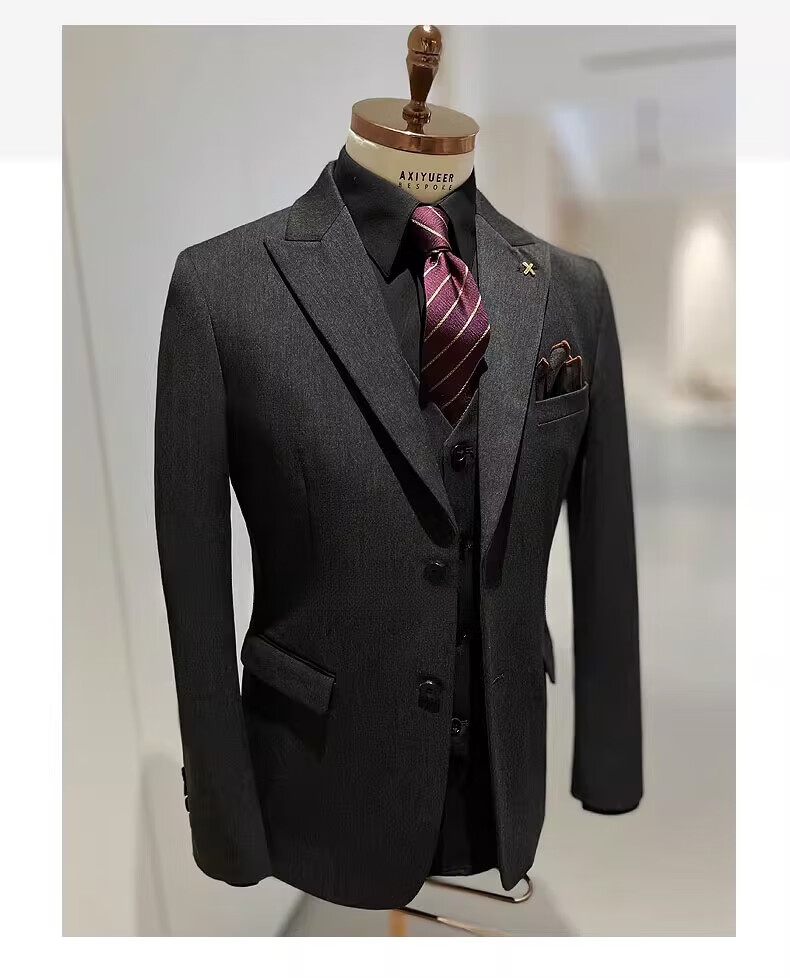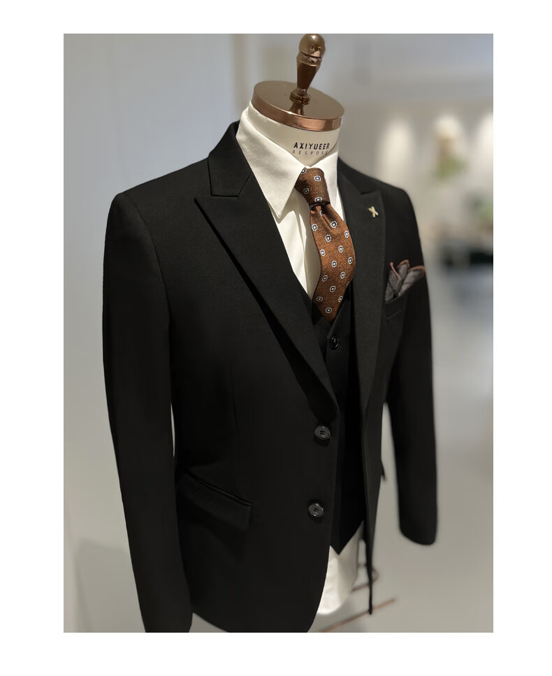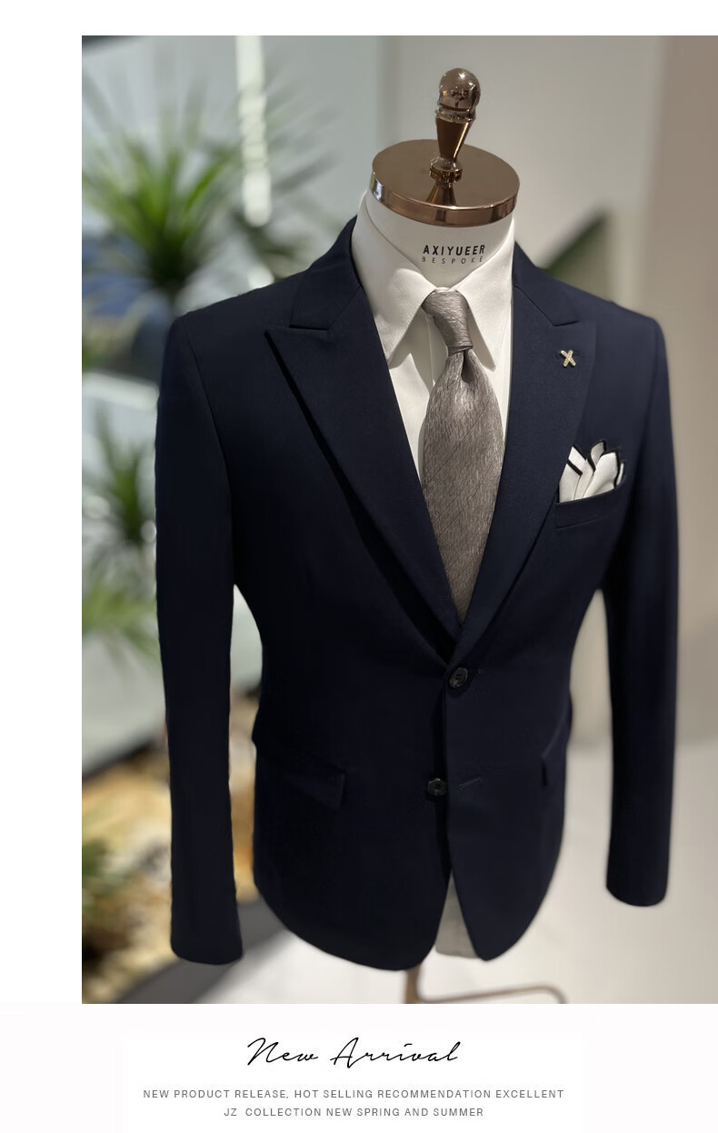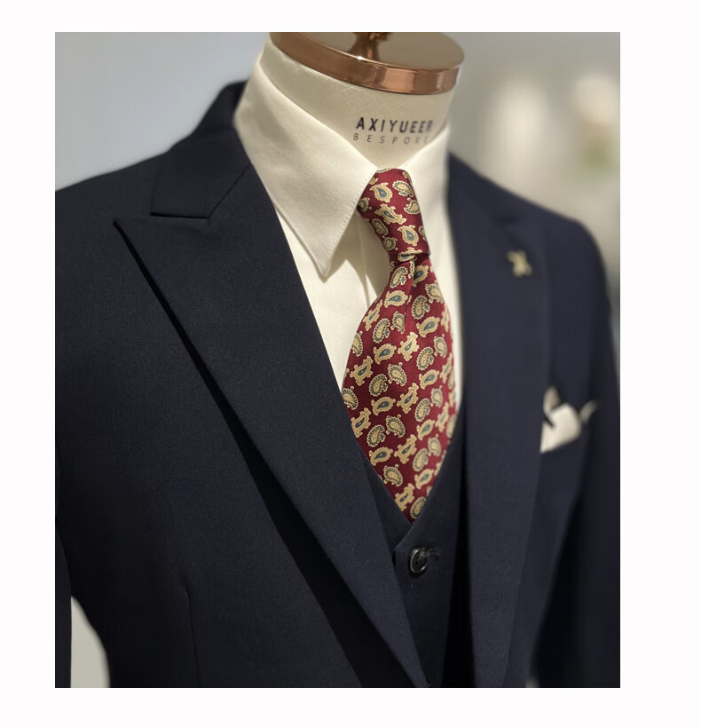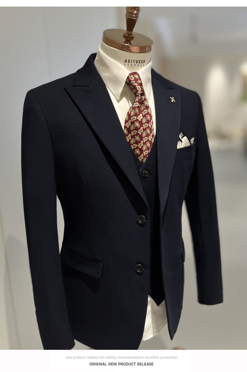 NKDH luxury brand suit suit men's autumn and winter wedding dress business casual formal dress groom's slim style three-piece suit XF601 navy blue (suit + vest + trousers) 2XL