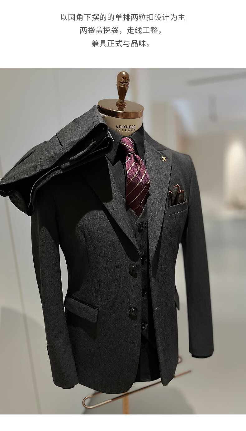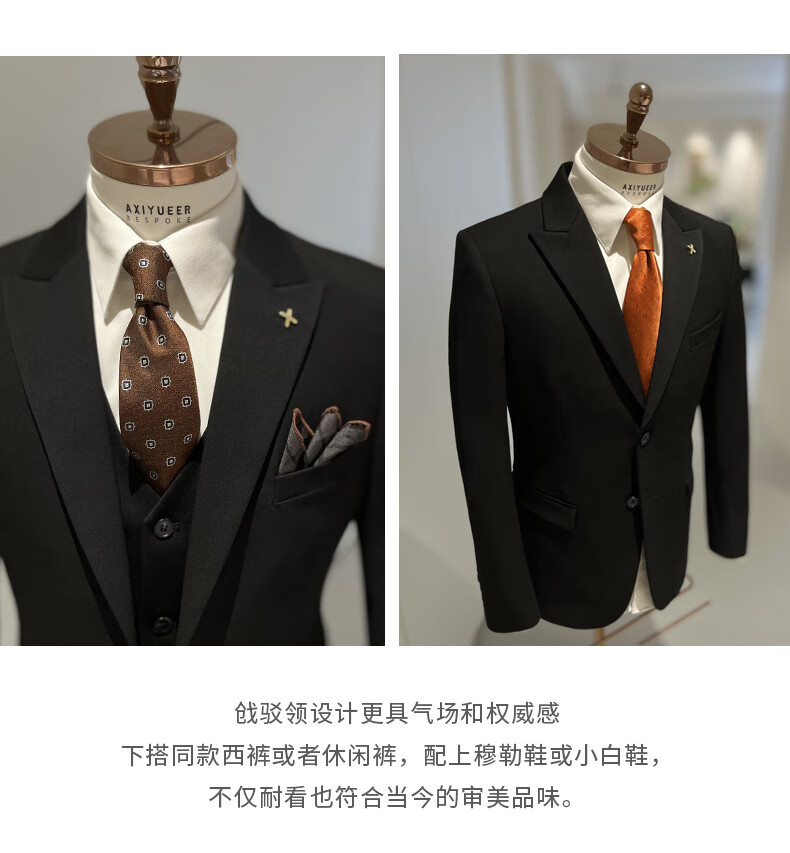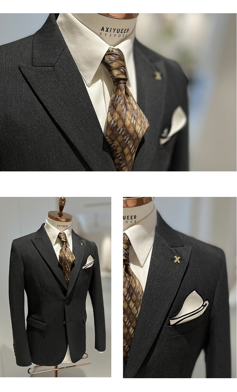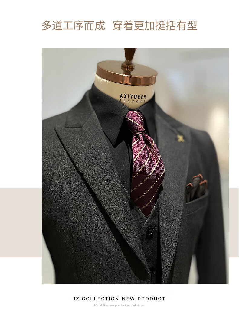 NKDH luxury brand suit suit men's autumn and winter wedding dress business casual formal dress groom's slim style three-piece suit XF601 navy blue (suit + vest + trousers) 2XL