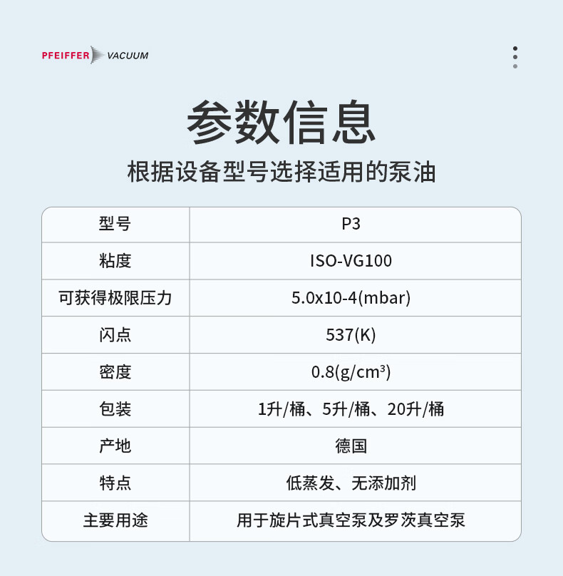 German Pfeiffer vacuum pump oil P3 1L/5L/20L Pfeiffer vacuum oil mechanical pump oil Oil P3 mass spectrometer special oil lubricant original Oil P3-1L