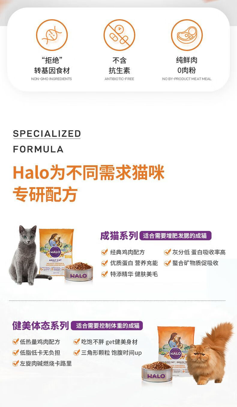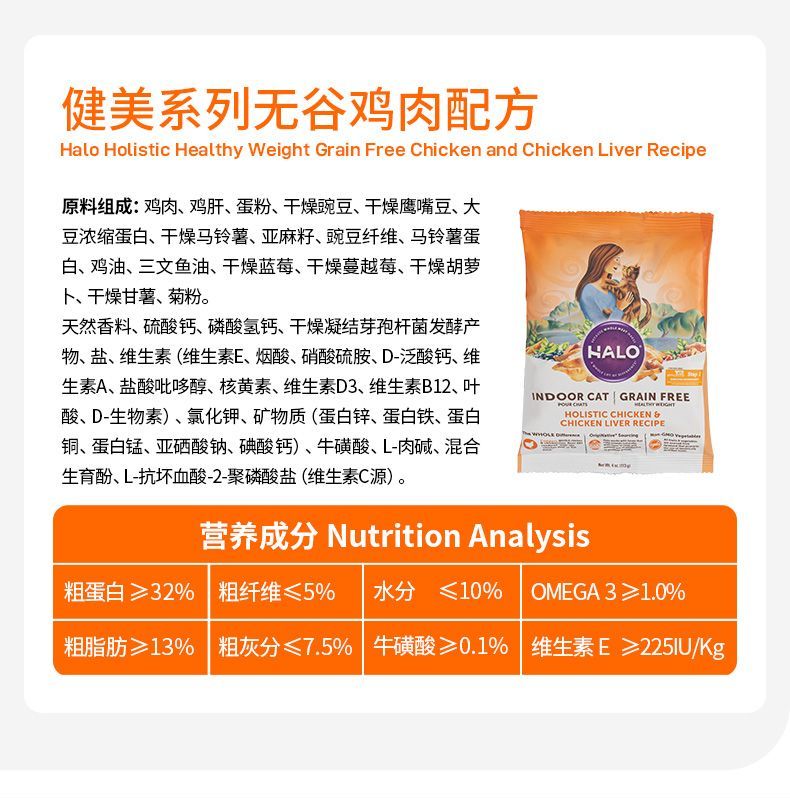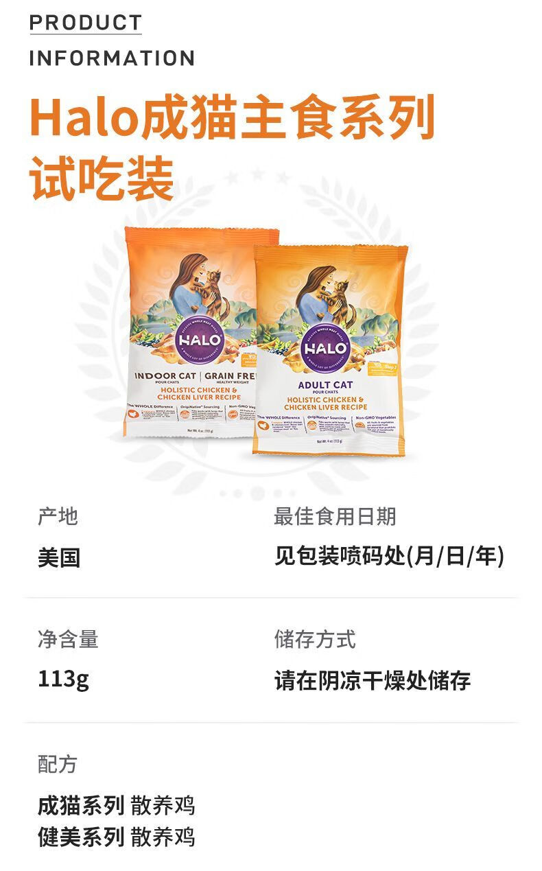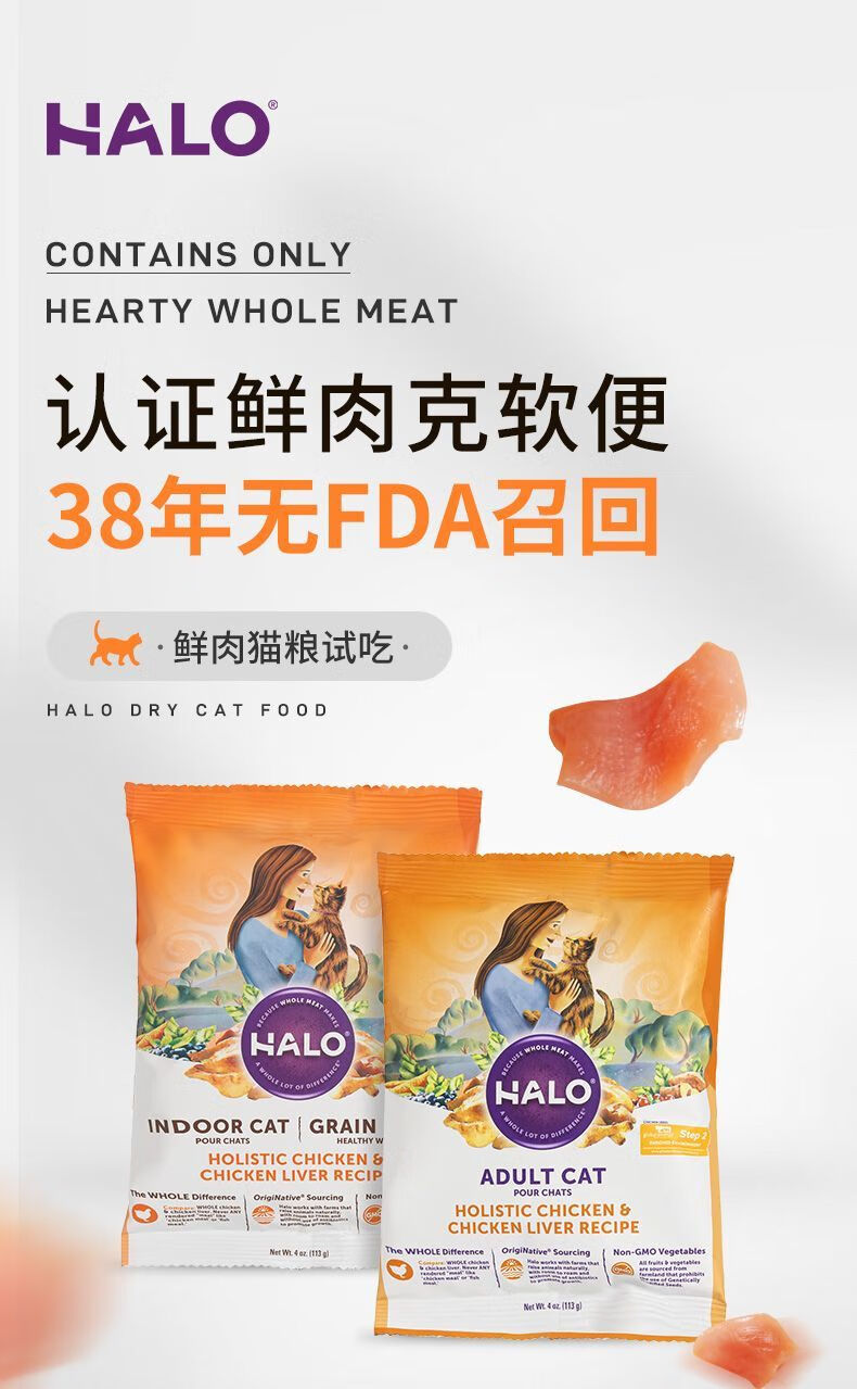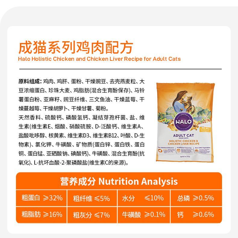 HALO IN CHINESE Cat Food Adult Cat Free Range Chicken Series Pure Fresh Meat Trial Cat Food Adult Cat Bodybuilding Series Chicken Flavor 4oz_113g