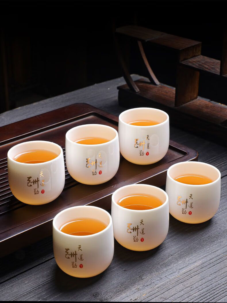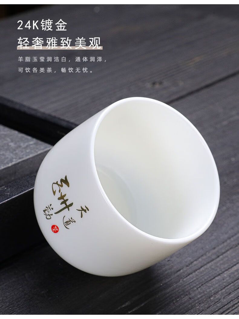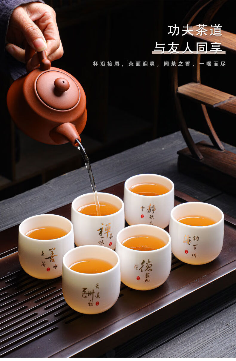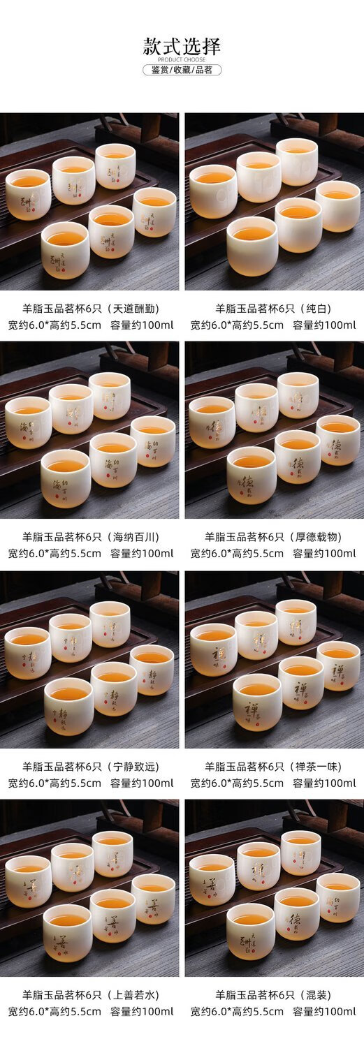 Tea cup set of 6, mutton-fat jade tea cup, six-piece tea cup, ceramic household kung fu tea cup, tea set set, white porcelain master, mutton-fat jade tea cup - mixed pack, 6 pieces, 6 pieces
