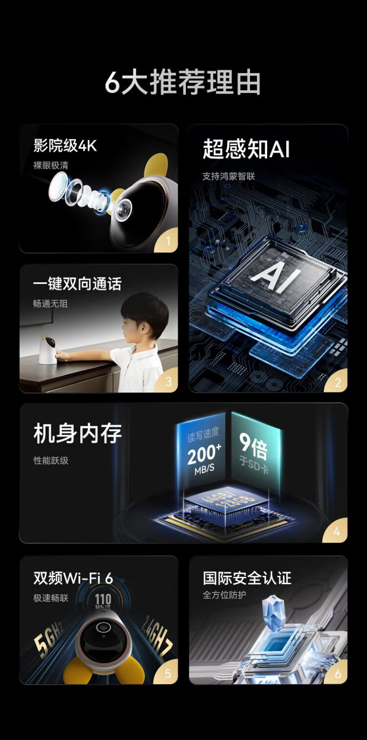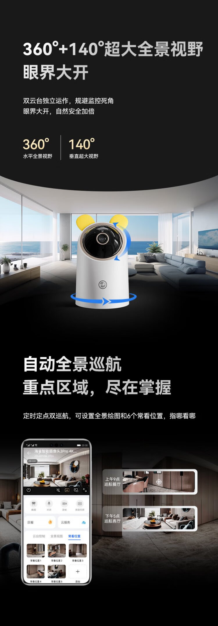 Puffin 8 million ultra-clear camera monitor home 360-degree night vision panoramic mobile phone remote call baby elderly care PTZ security video recorder one-click call 128G large capacity