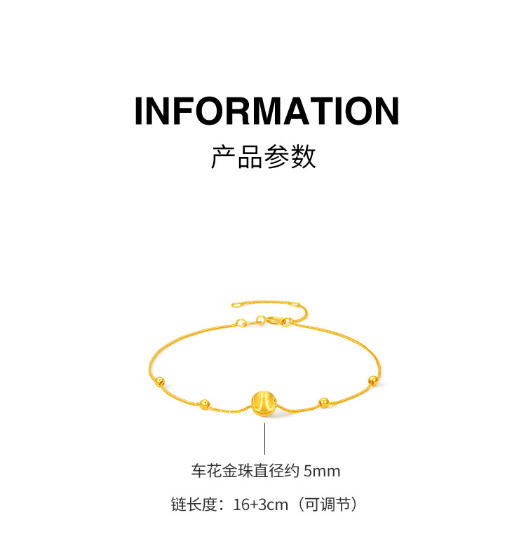 Saturday Blessing Yellow 18K Gold Bracelet Women's Cartoon Gold Beads Simple Fashion Jewelry for Girls 16cm+3cm Tail Chain