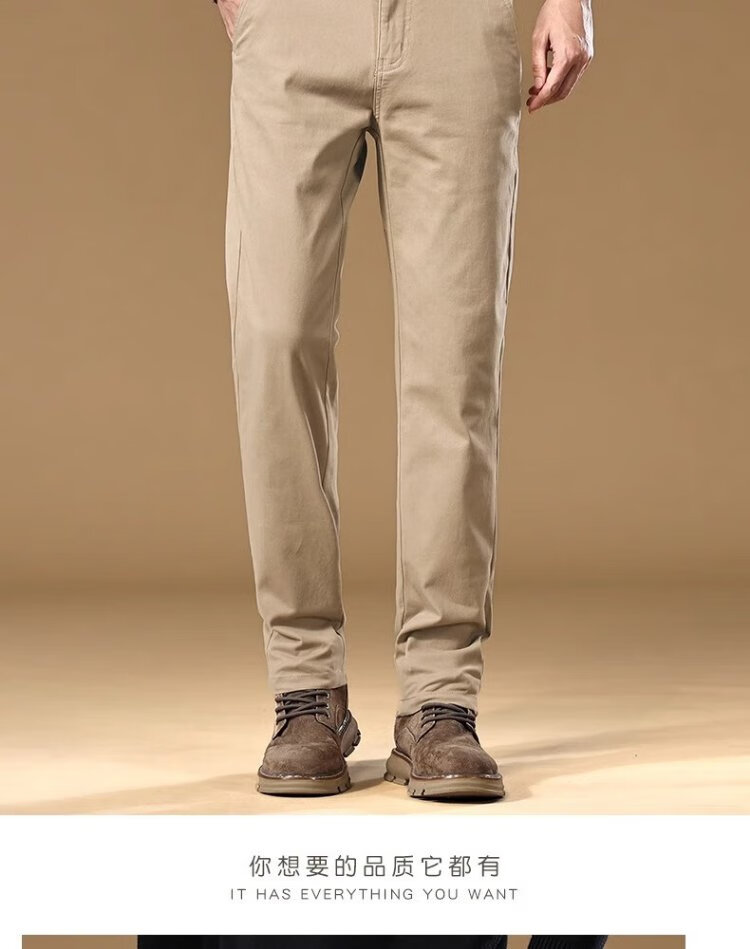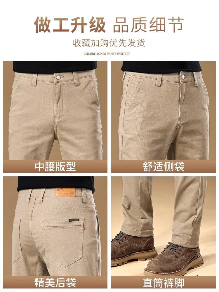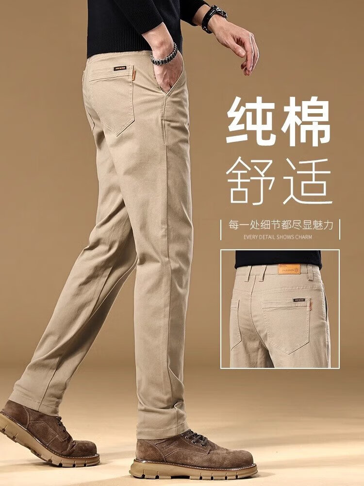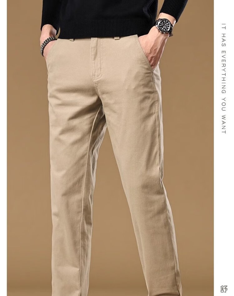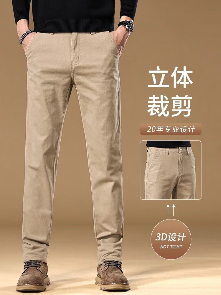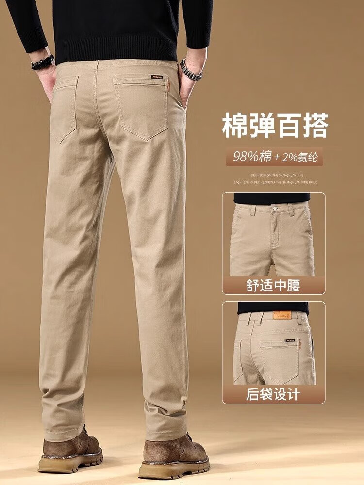 JEANSWEST Khaki Solid Color Pants Men's Spring and Autumn Men's Cotton Casual Pants 2025 Summer New Business Straight Slim Men's Pants Khaki Regular 30 Waist 2 feet 3 Suitable for 120 Jin Jin is equal to 0.5 kg Up and down
