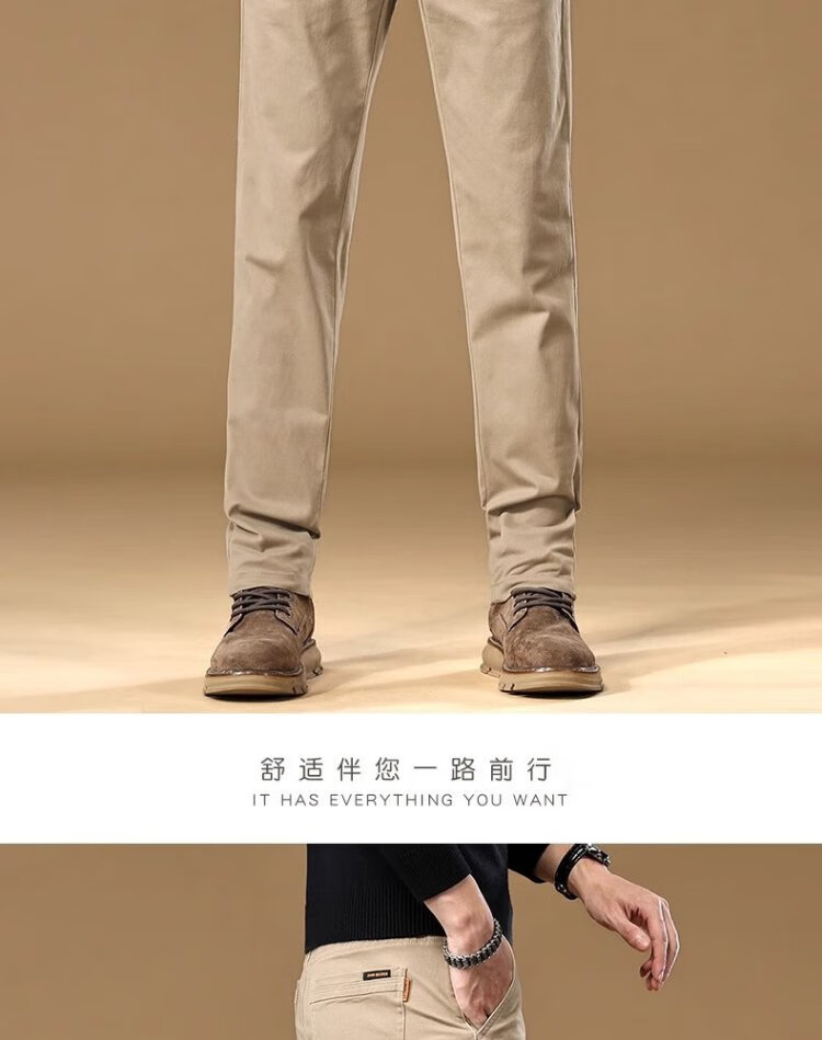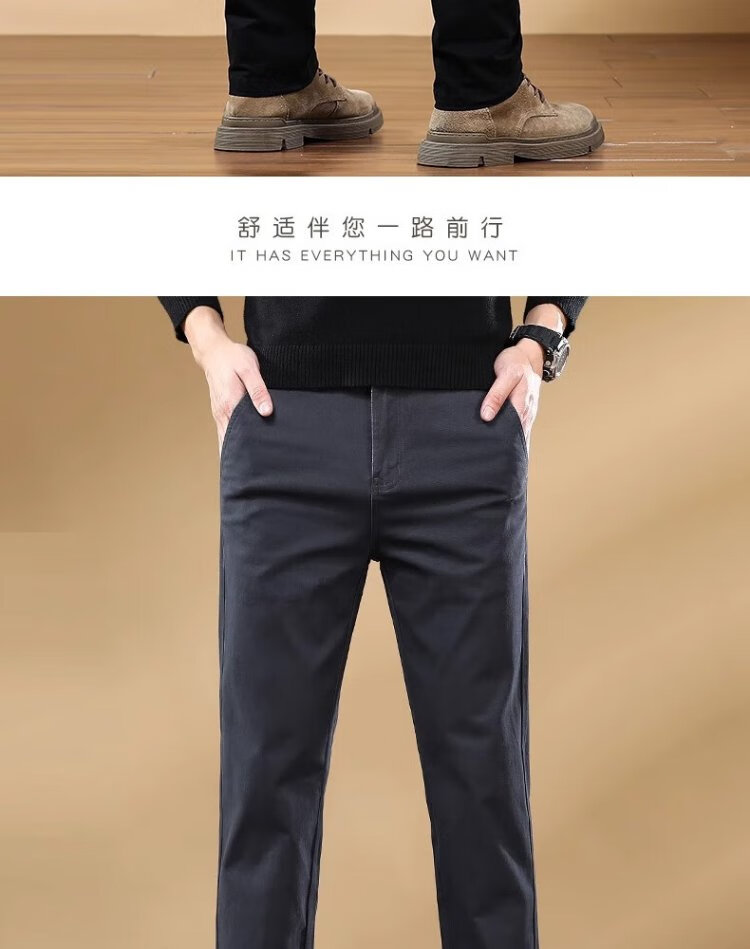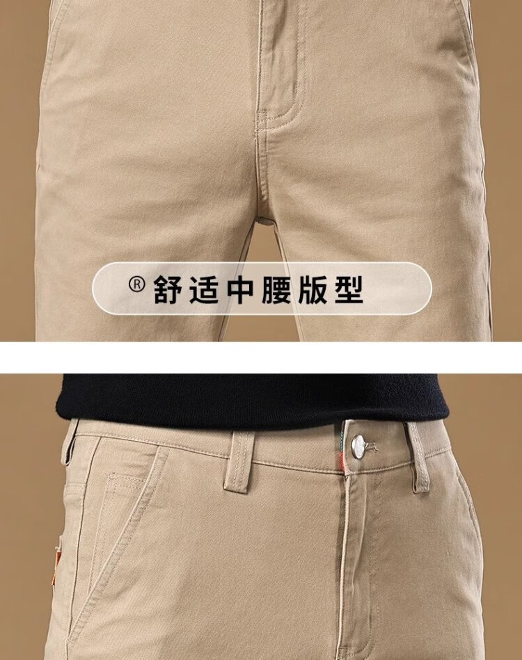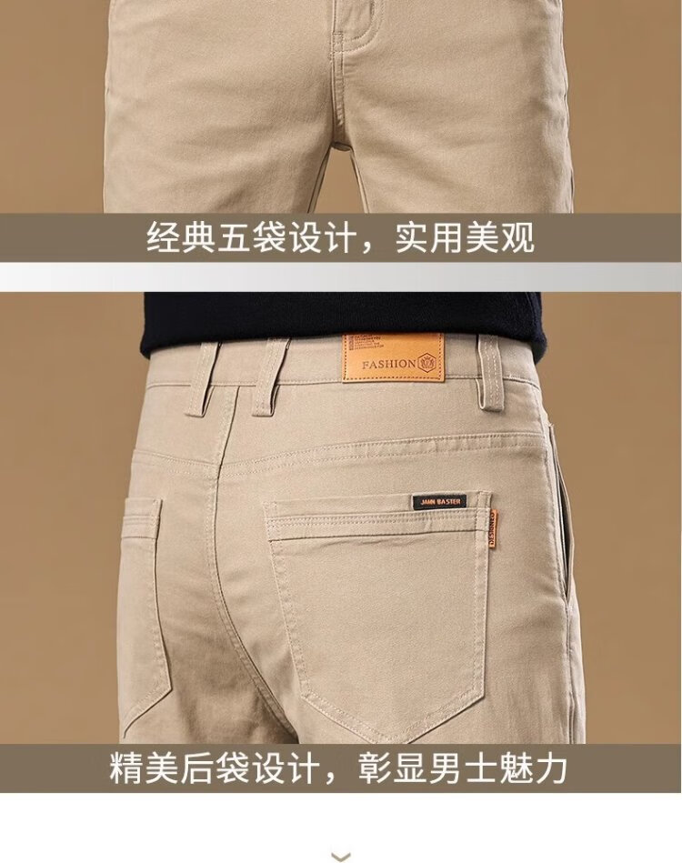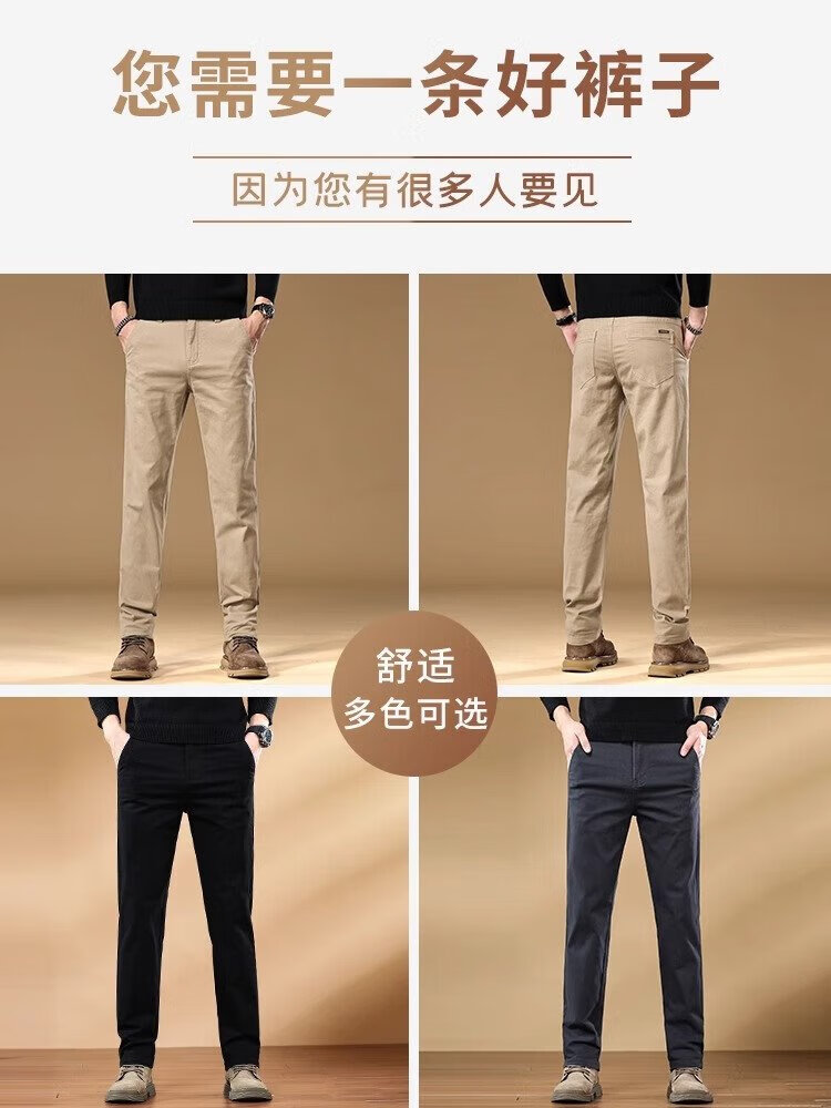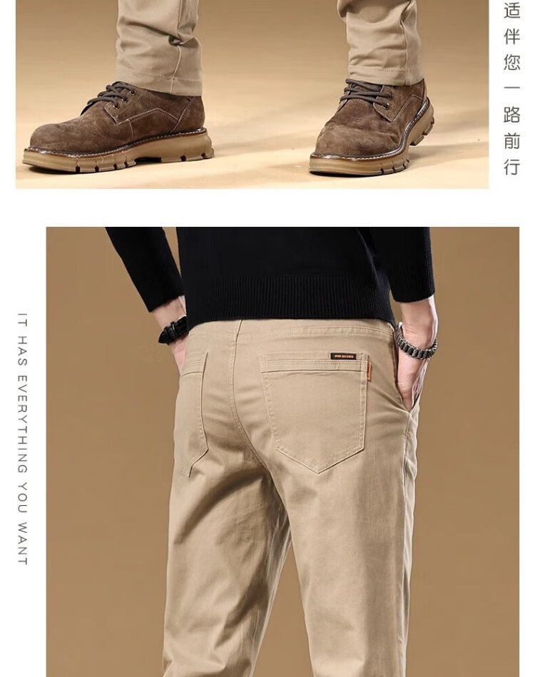 JEANSWEST Khaki Solid Color Pants Men's Spring and Autumn Men's Cotton Casual Pants 2025 Summer New Business Straight Slim Men's Pants Khaki Regular 30 Waist 2 feet 3 Suitable for 120 Jin Jin is equal to 0.5 kg Up and down