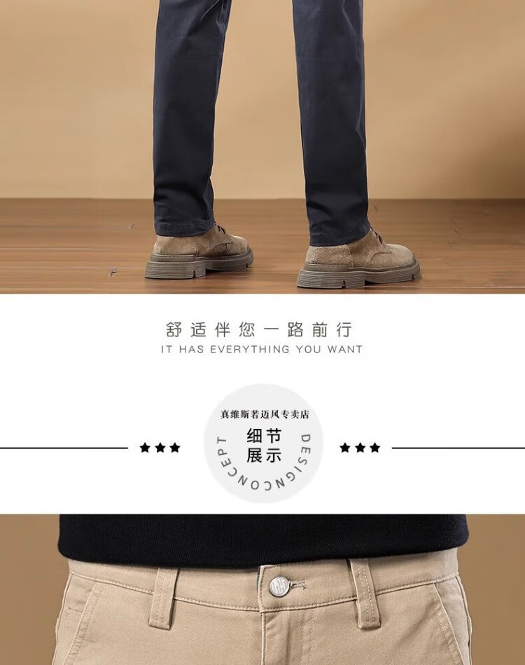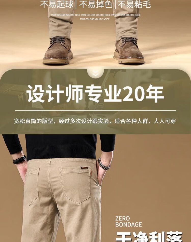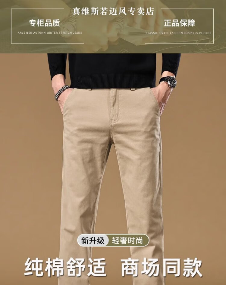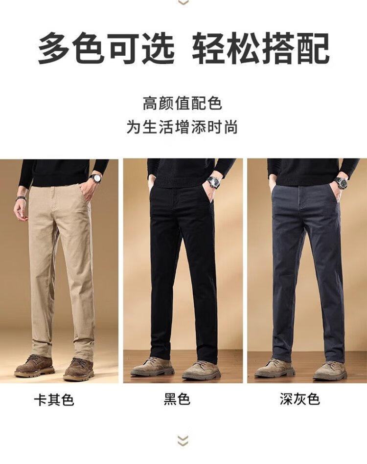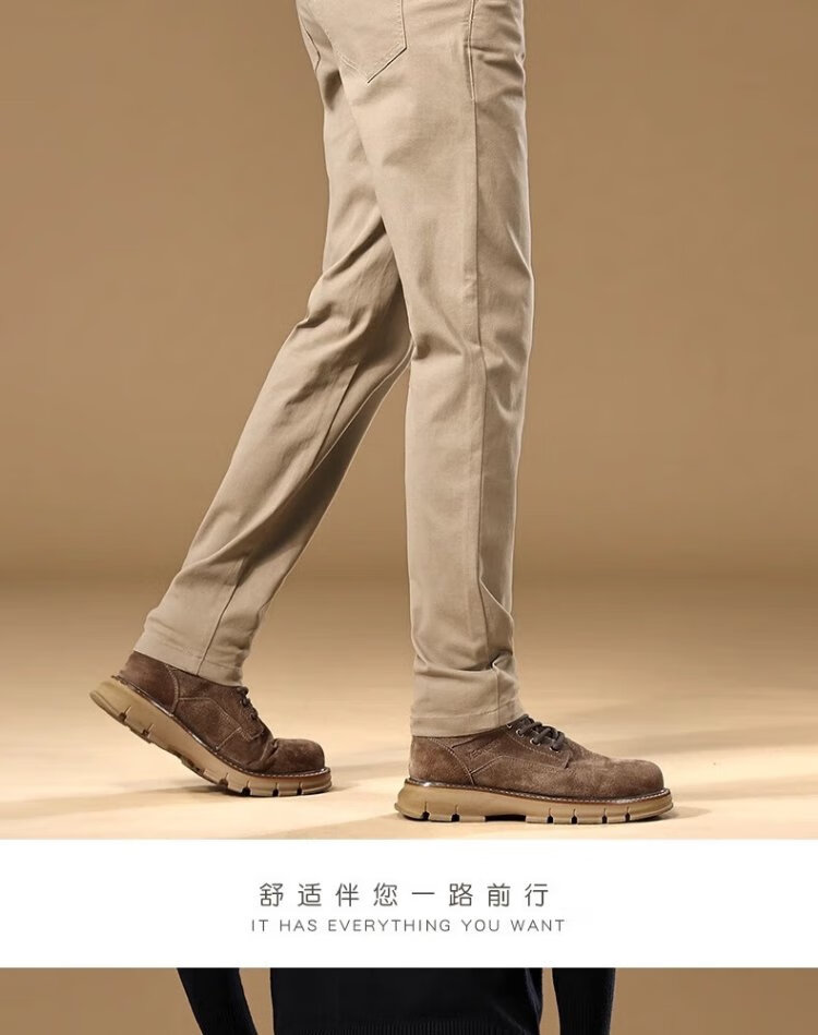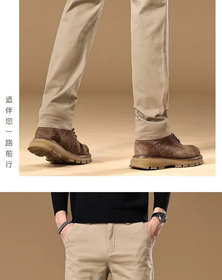 JEANSWEST Khaki Solid Color Pants Men's Spring and Autumn Men's Cotton Casual Pants 2025 Summer New Business Straight Slim Men's Pants Khaki Regular 30 Waist 2 feet 3 Suitable for 120 Jin Jin is equal to 0.5 kg Up and down