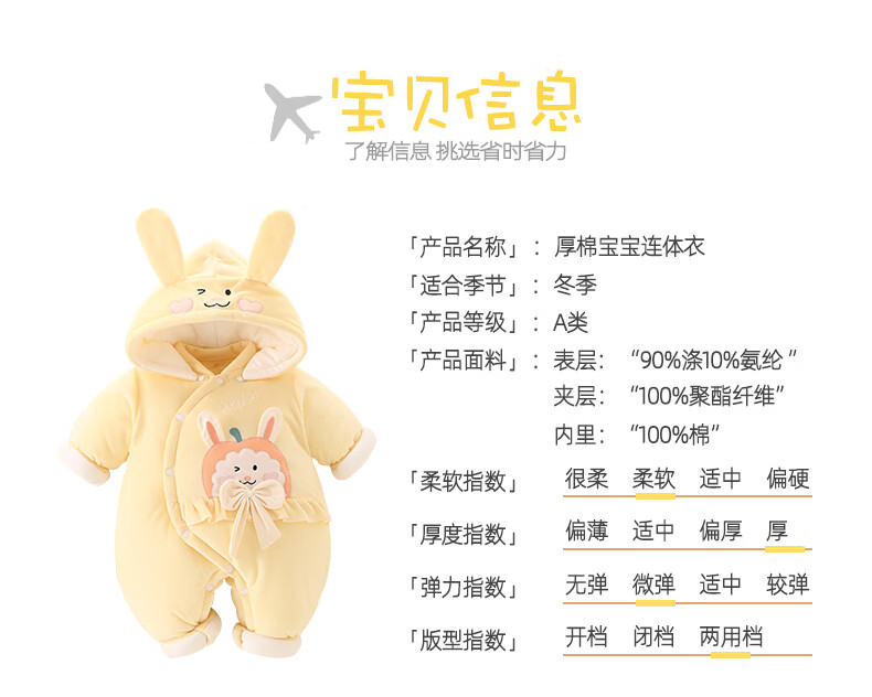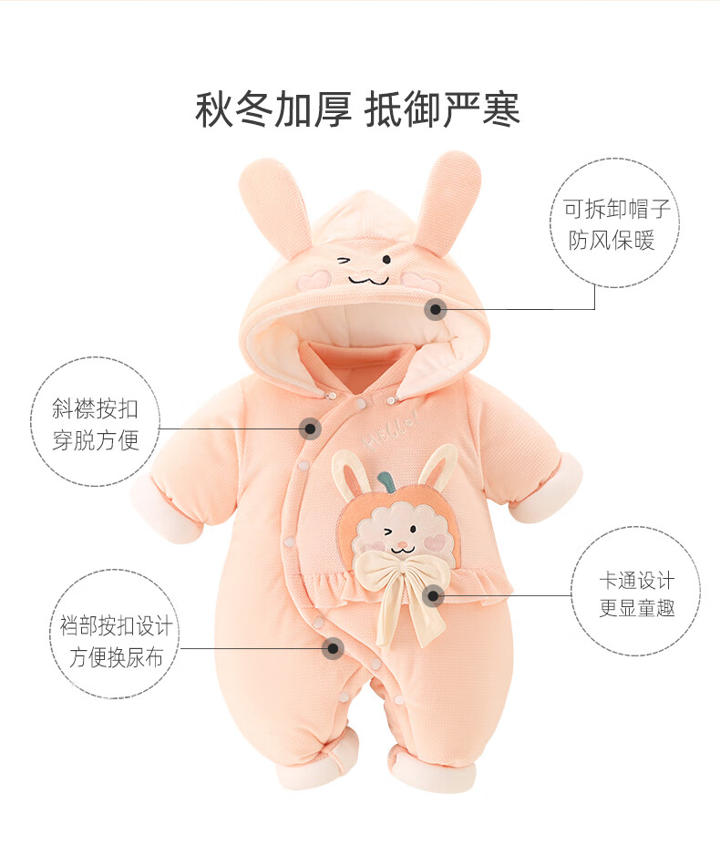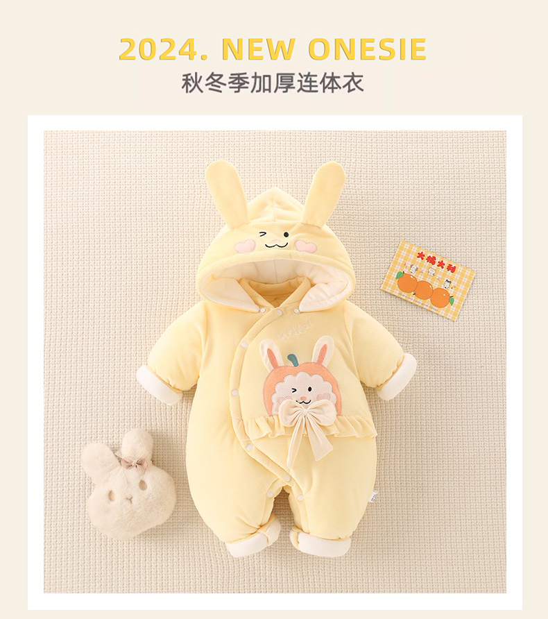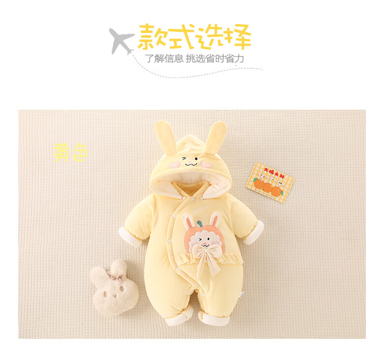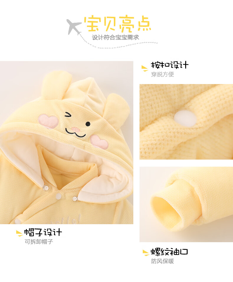 G.duck Newborn Baby Clothes Autumn and Winter Baby Jumpsuit Warm Thickened Padded Jacket Going Out Clothes Suit Holder Winter Jacket Umbrella Bear Yellow 73cm