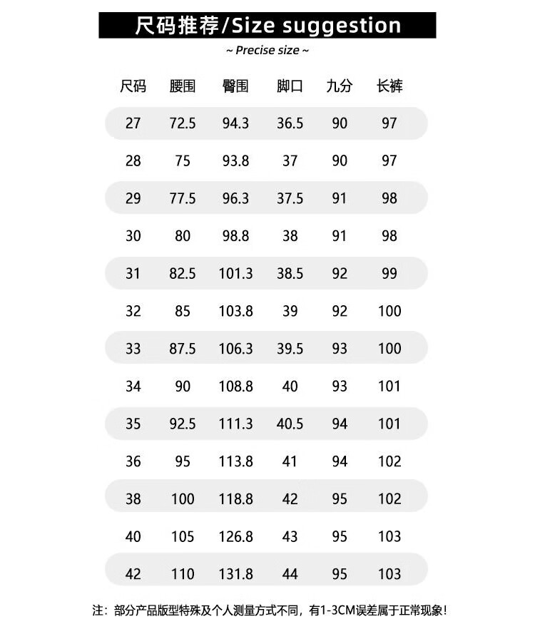 Outseam (cm) 99 cm 101.5 cm 104 cm 106.5 cm 109 cm