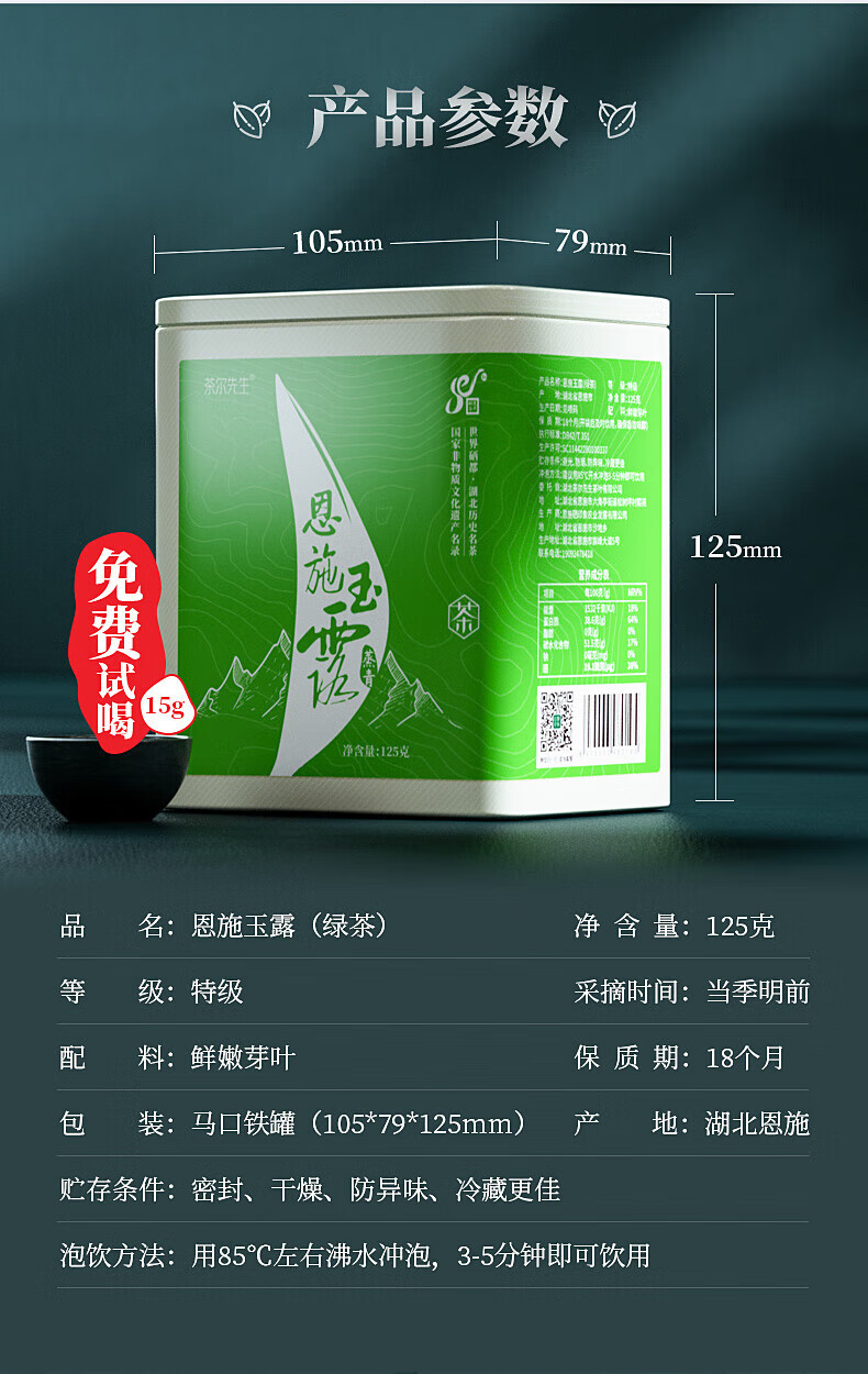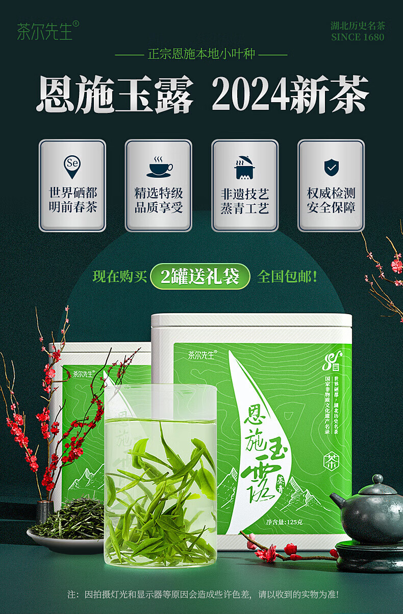 Mr. Cha'er Mingqian Special Grade Enshi Yulu Green Tea 2024 Spring Tea Steamed Young Tea with Strong Chestnut Flavor Special Yulu 125g*2 Cans