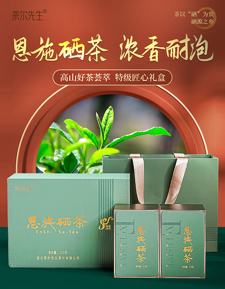 Mr. Cha'er Mingqian Premium Green Tea Spring Tea 2024 New Tea Gift Box Enshi Selenium Tea Strong Flavor 250g Gift Box