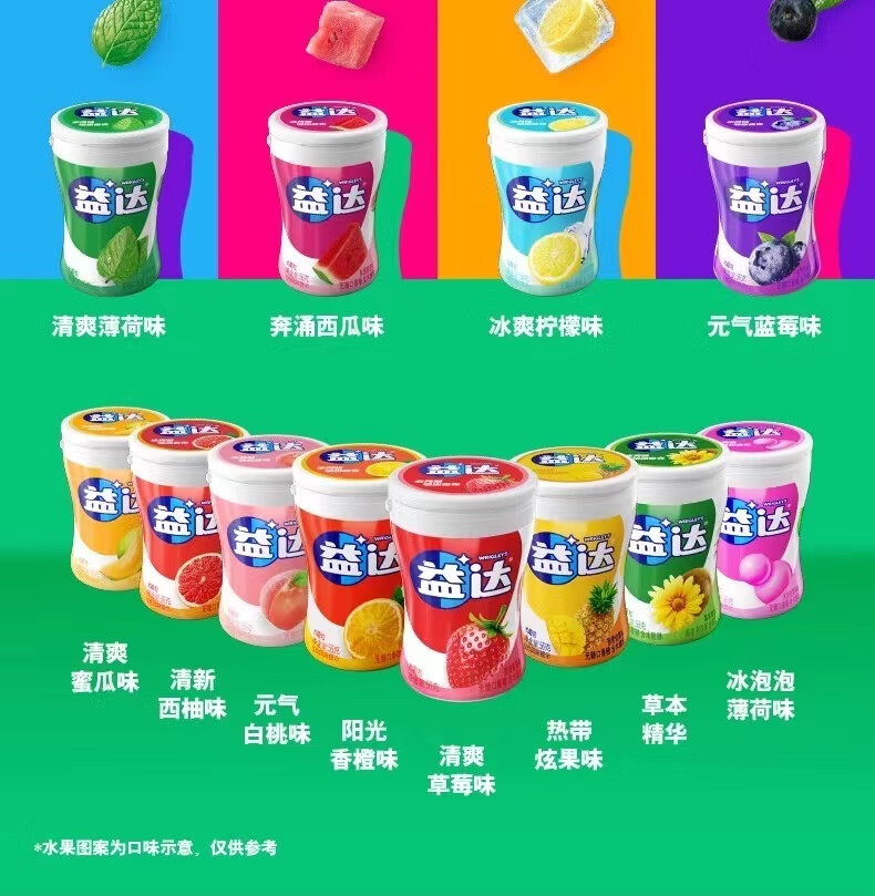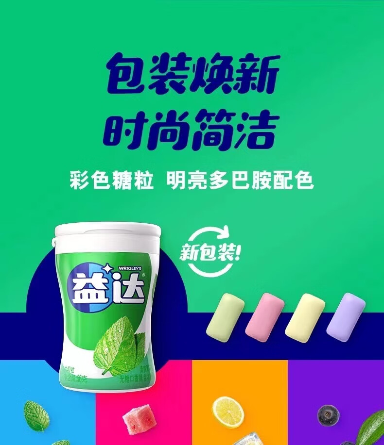 Yida xylitol chewing gum 40 pieces sugar-free mint flavor Wrigley fruit flavor fresh breath portable 64g mint flavor*2