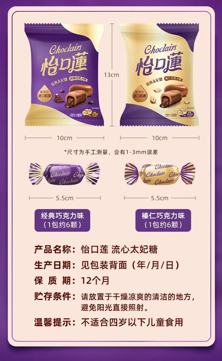 Cadbury toffee powder 20 packs hazelnut chocolate flavor wedding candy sandwich wedding candy snack snacks New Year's goods about 24 pieces classic chocolate flavor * 4 packs