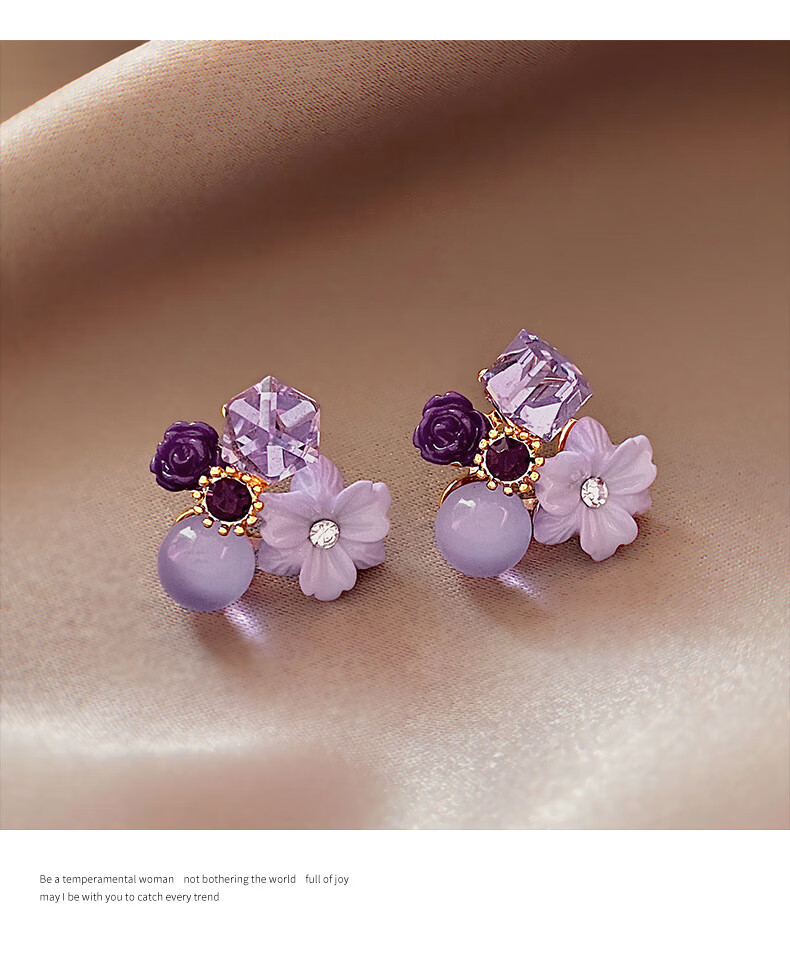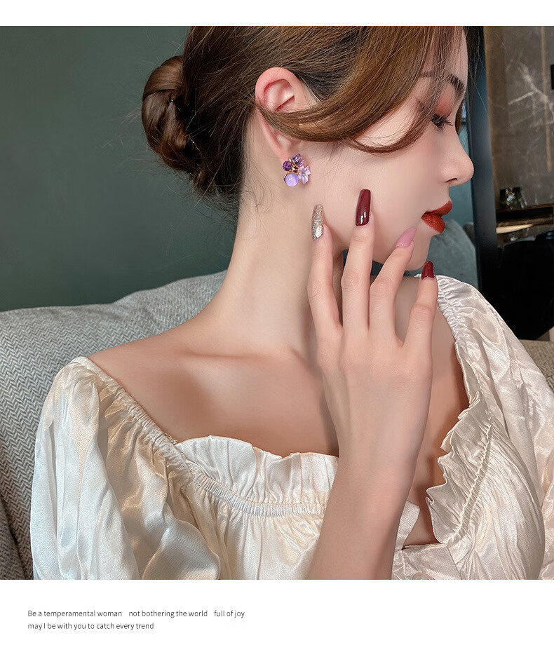 S925 silver needle purple crystal retro flower earrings for women 2023 new niche design noble temperament earrings main picture