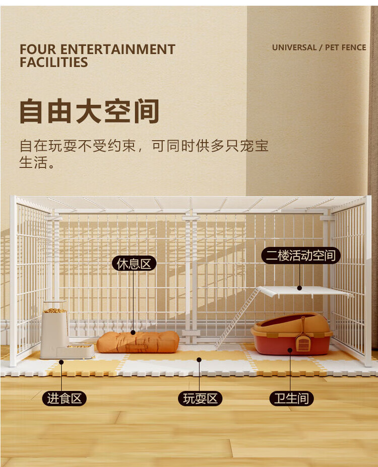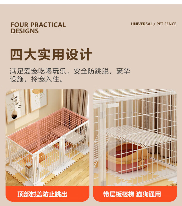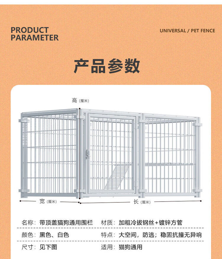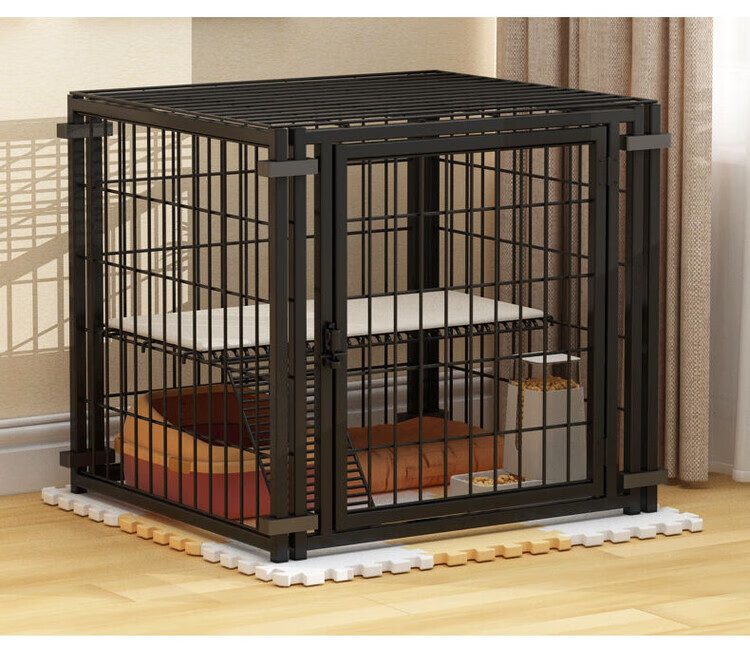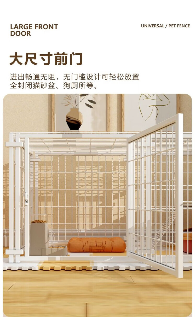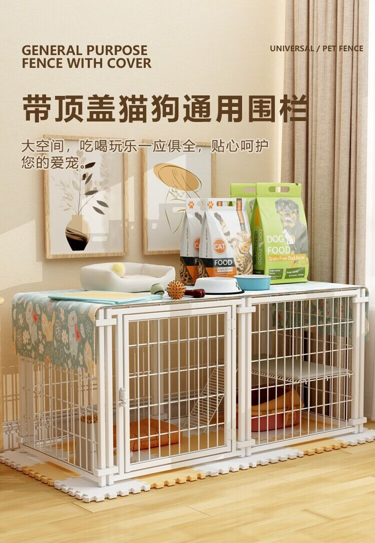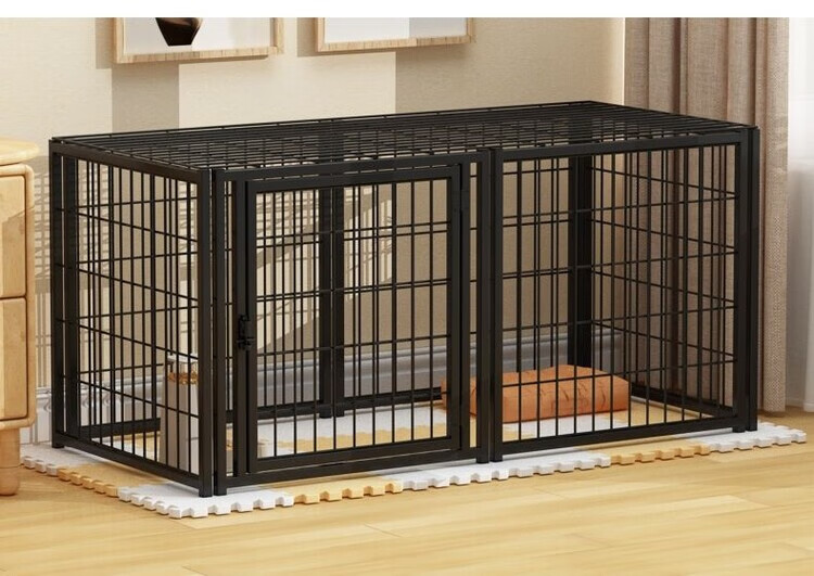 Jiamen JIAMEN (JIAMEN) anti-jailbreak fence dog cage, household dog isolation fence, free combination reinforcement for small dogs, cats and dogs, Teddy Corgi, black, bold and reinforced, anti-tilt, 6 pieces 120*60*70, with top to prevent jailbreak