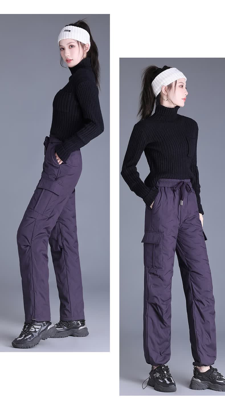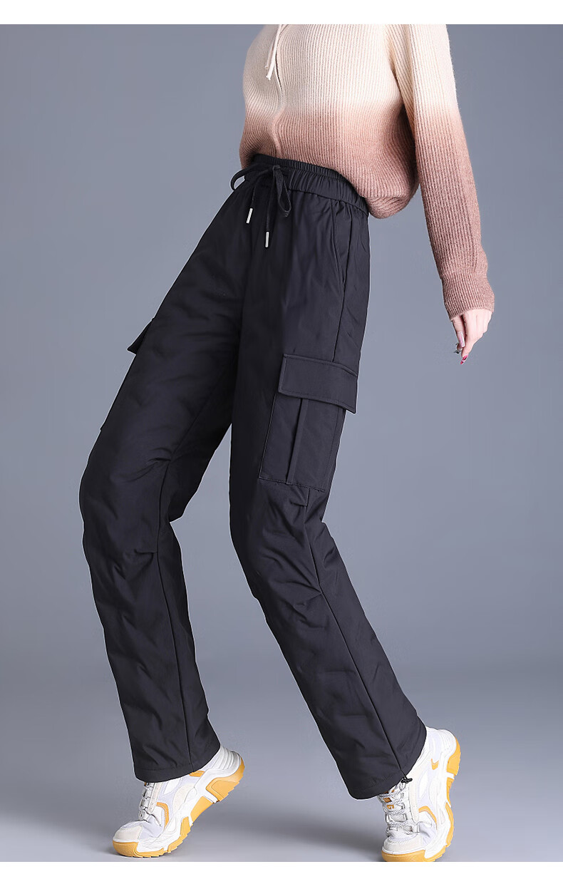 Flying in the snow straight down pants for women 2025 new overalls cold-proof and warm high-waisted leggings slim winter trousers black L (170) /115-130Jin Jin equals 0.5 kg