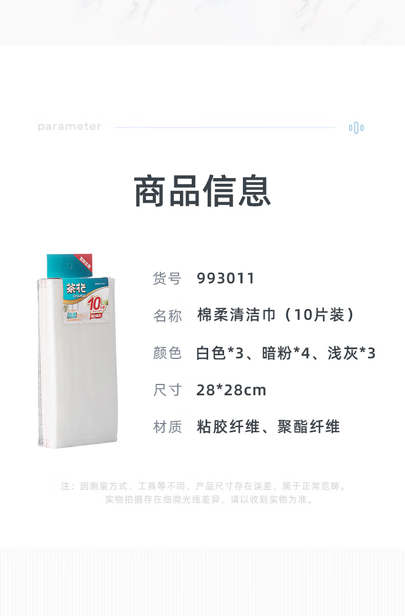 Camellia (CHAHUA) Bamboo fiber dishcloth, dishcloth, housekeeping cleaning kitchen towel, volume package, 3 packs of 30 pieces (28*28cm)