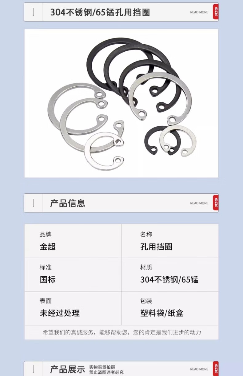 Jinchao 65 manganese steel hole circlip inner circlip C-type retaining ring stainless steel hole elastic retaining ring 3- 180 65 (5 pieces) 65 manganese