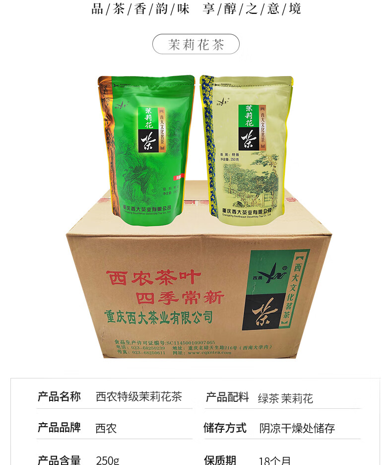 Xinong 2024 New Tea Xinong Jasmine Tea 250g Special Strong Fragrance Fragrance Cultural Tea Chongqing Specialty Tea Strong Fragrance 250g*2 Bags