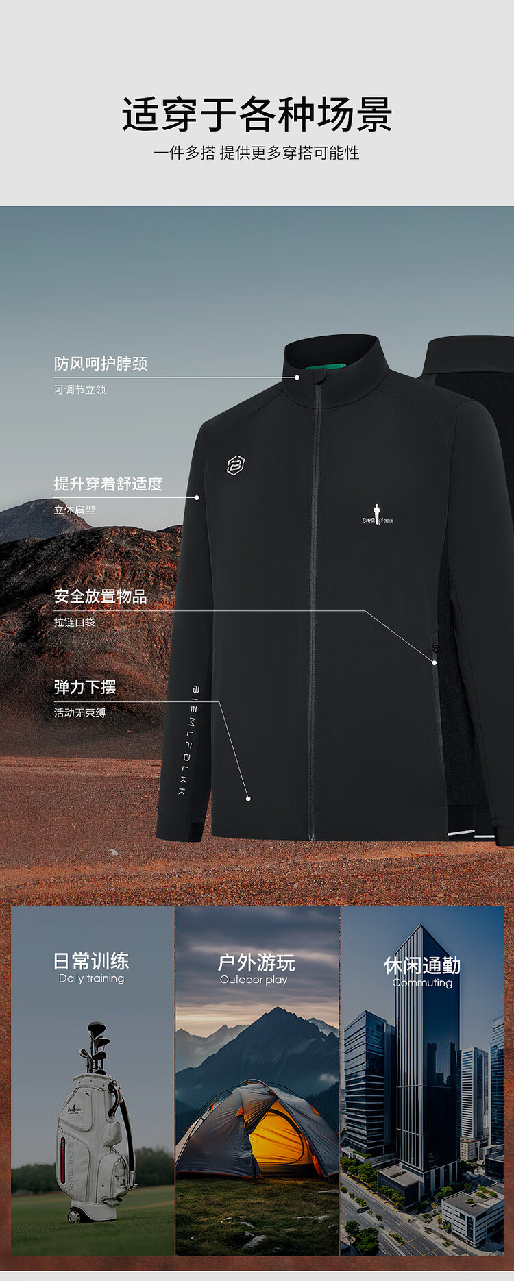 Biyinlefen Autumn Men's Fashion Top Casual Versatile Outdoor Sports Windproof Comfortable Antistatic Stand Collar Jacket Men 07 Black L