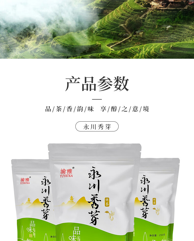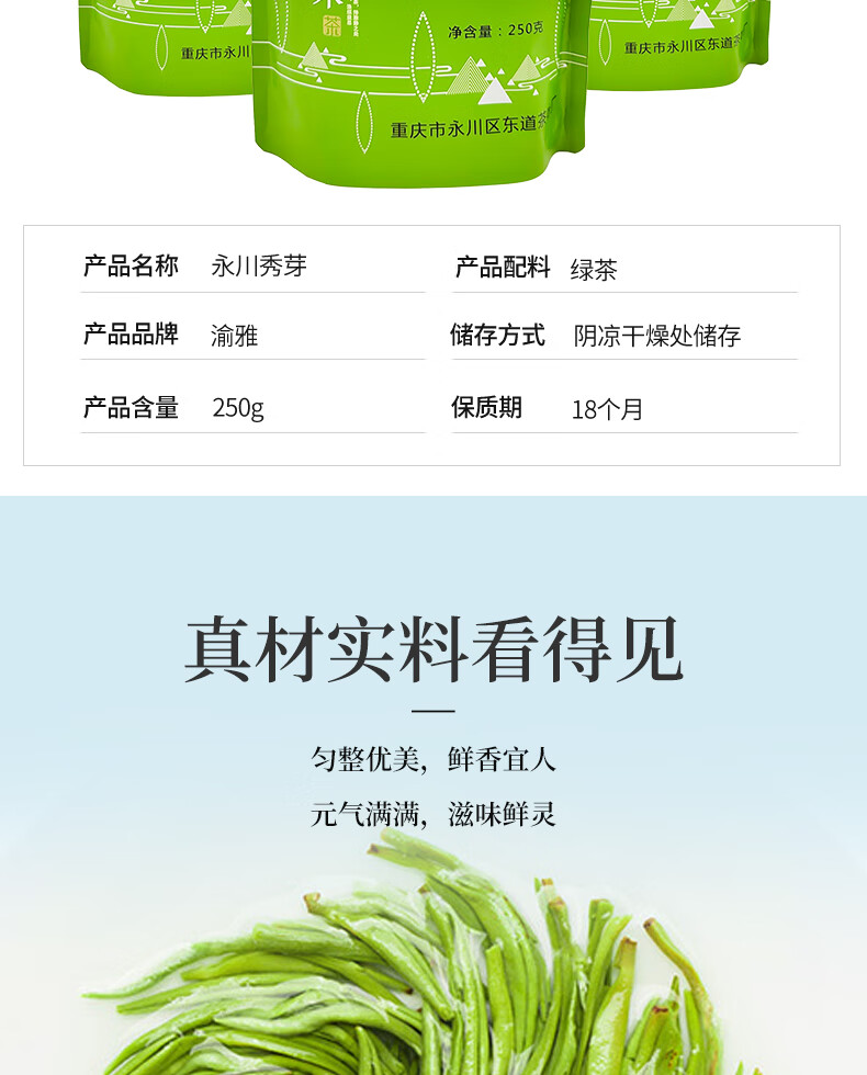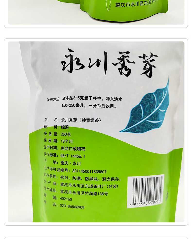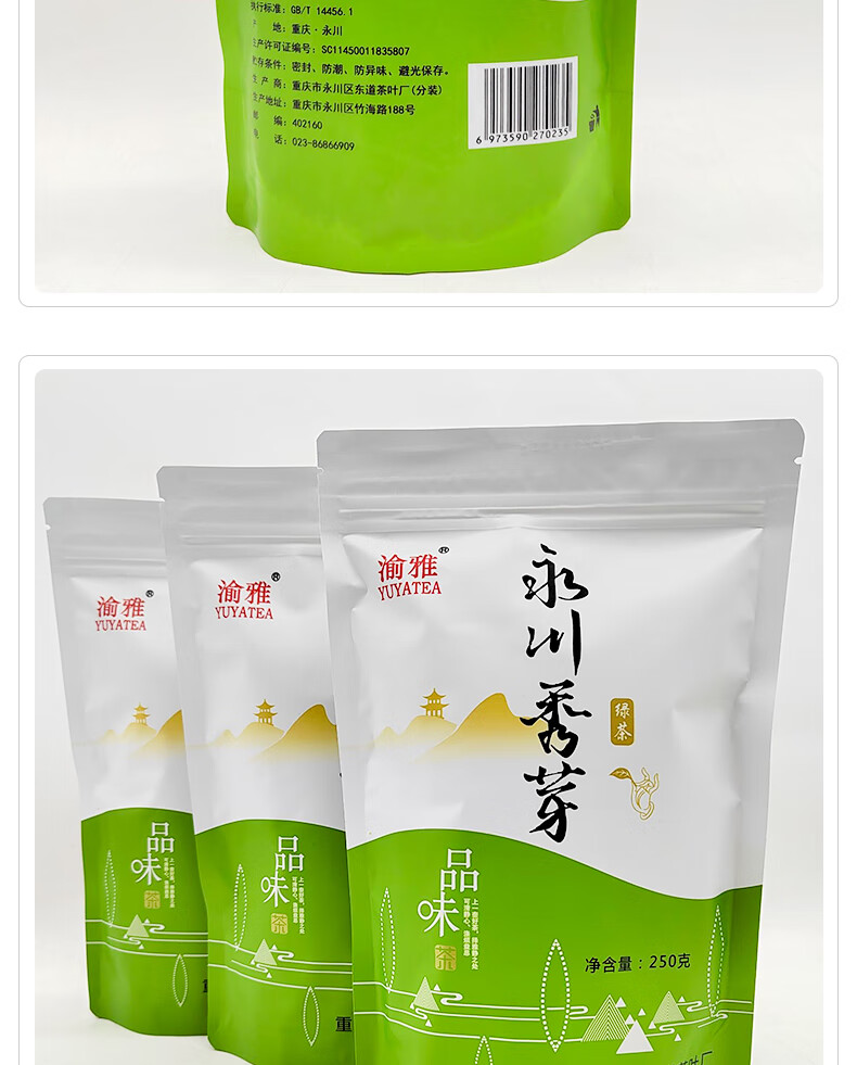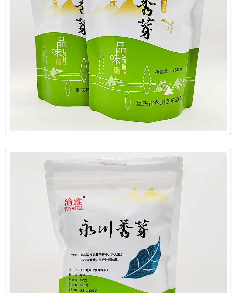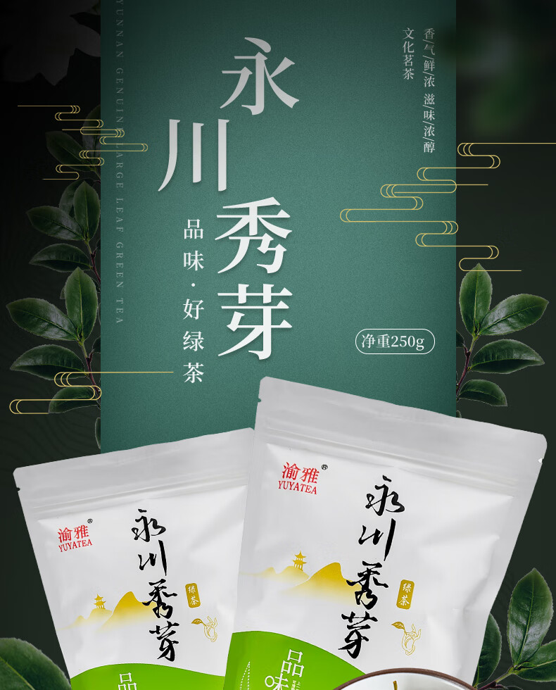 Chopstick circle Yuya YY Yongchuan Xiuya 250g bag Mingqian fried green tea household commercial Chongqing specialty Yongchuan green tea 250g*2 bags