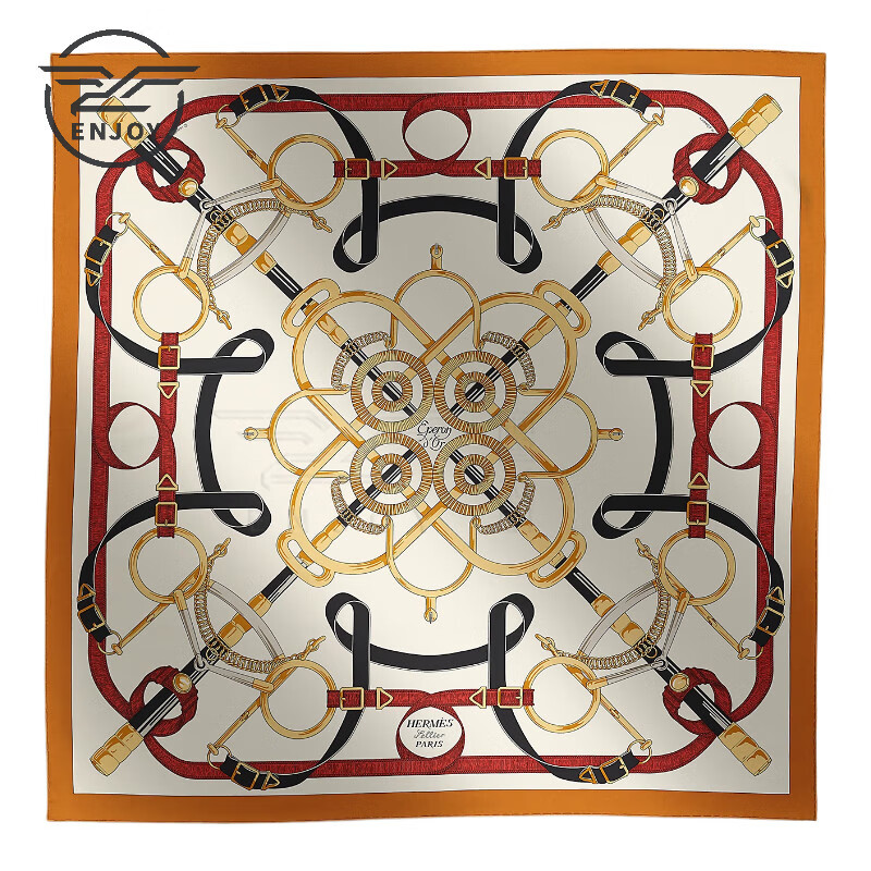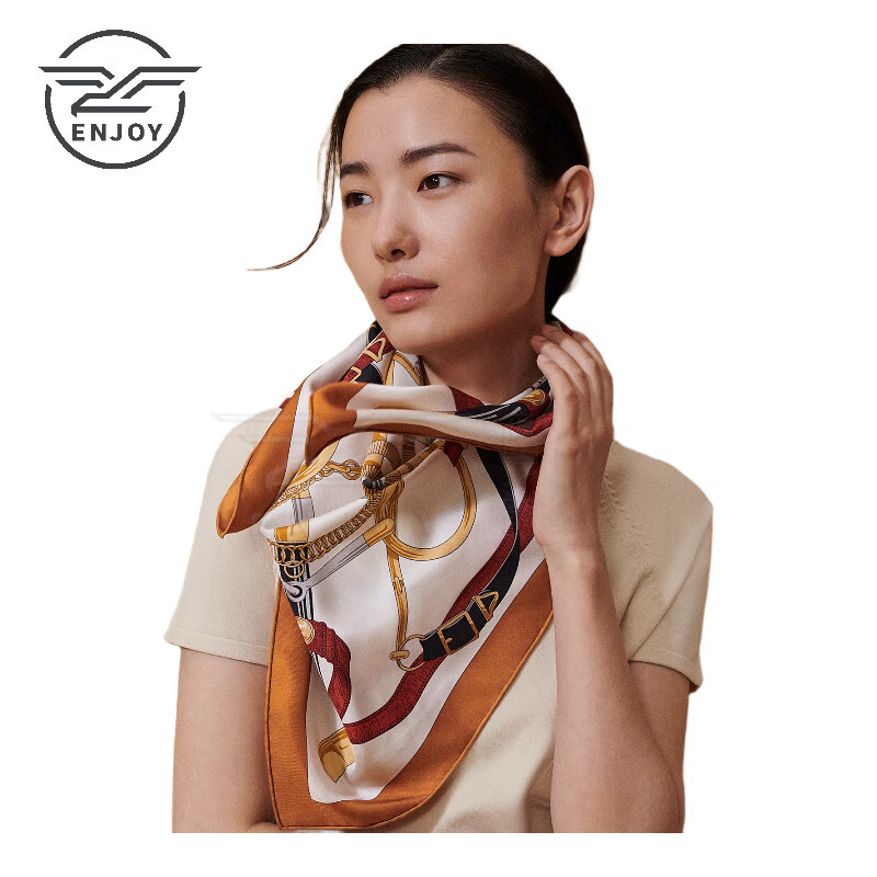 Hermes (HERMES) new silk scarf for women, double-sided shawl, hand-stitched edge 88.5x88.5 cm, caramel color