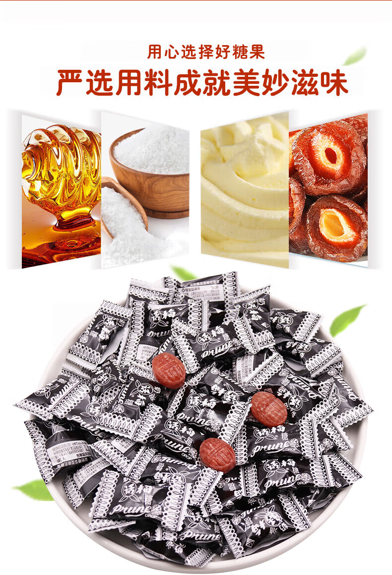 Guanshengyuan Butter Plum Candy 500g Bulk Tianshan Plum Sweet and Sour Candies Nostalgic Snacks ADM Assorted Gummies 500g (about 110 pieces)
