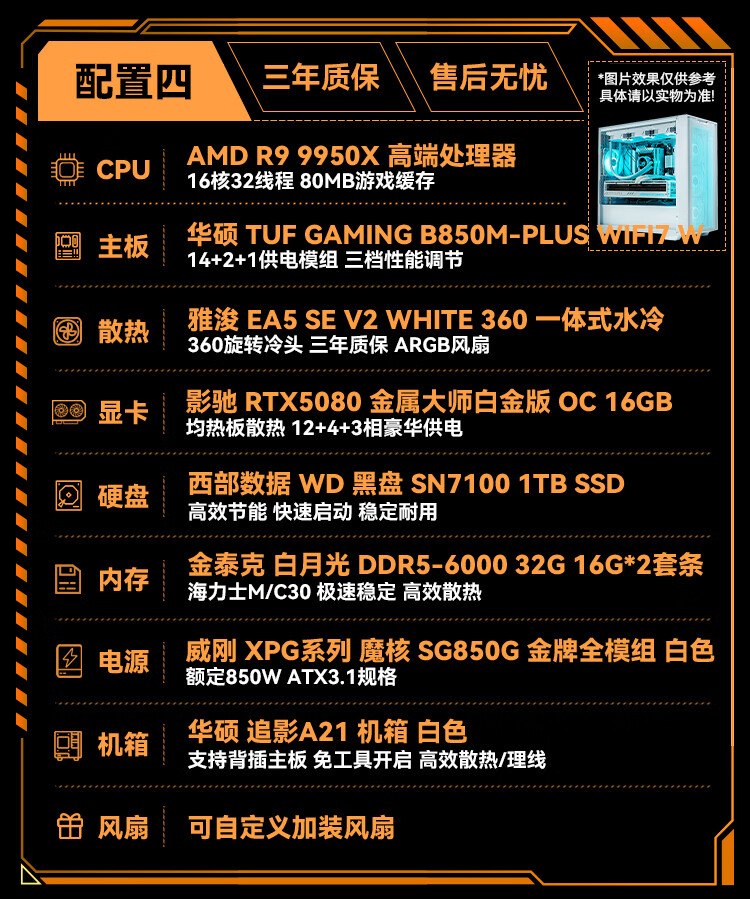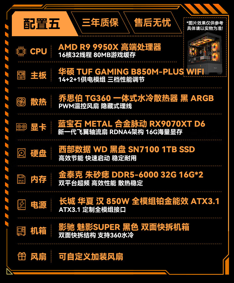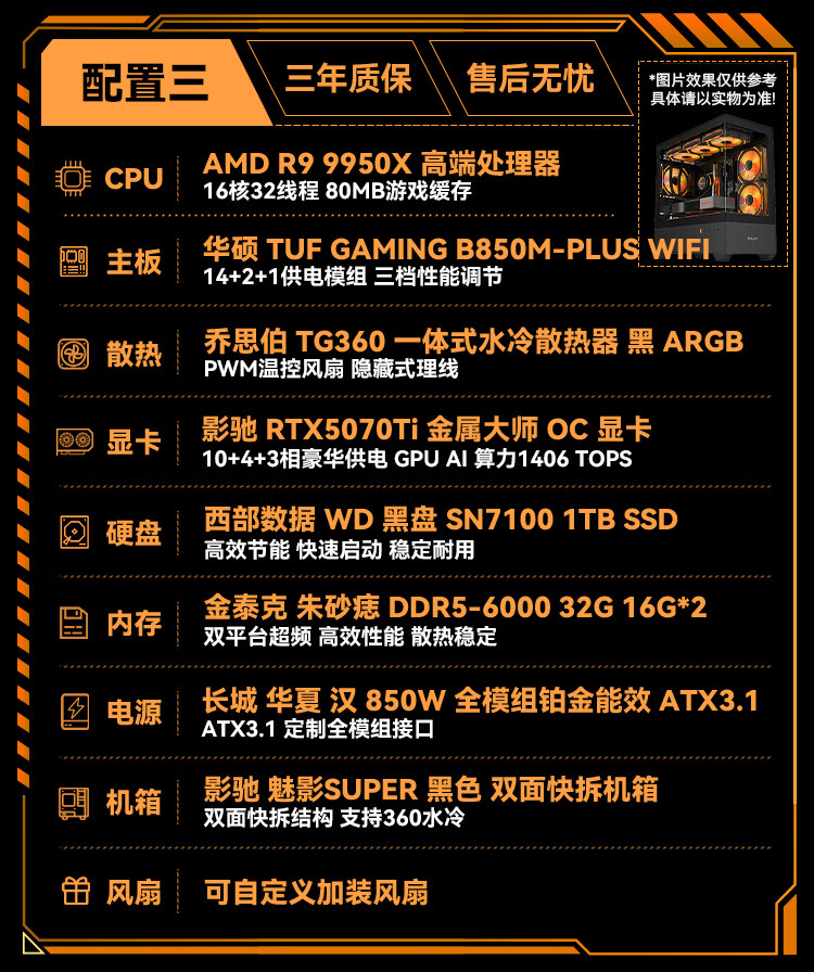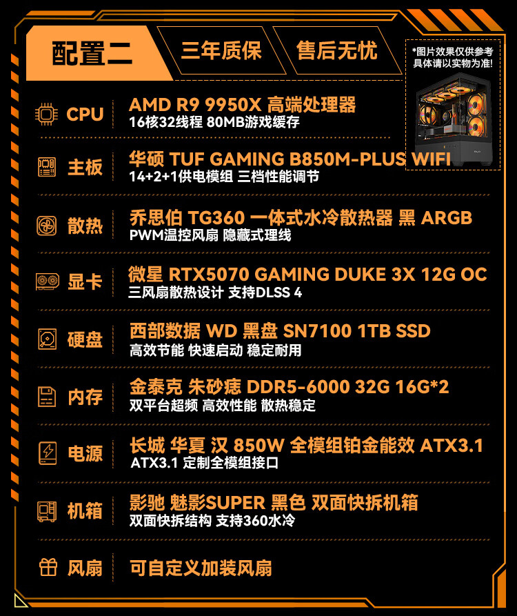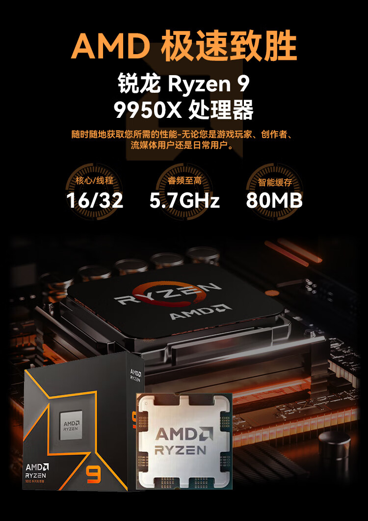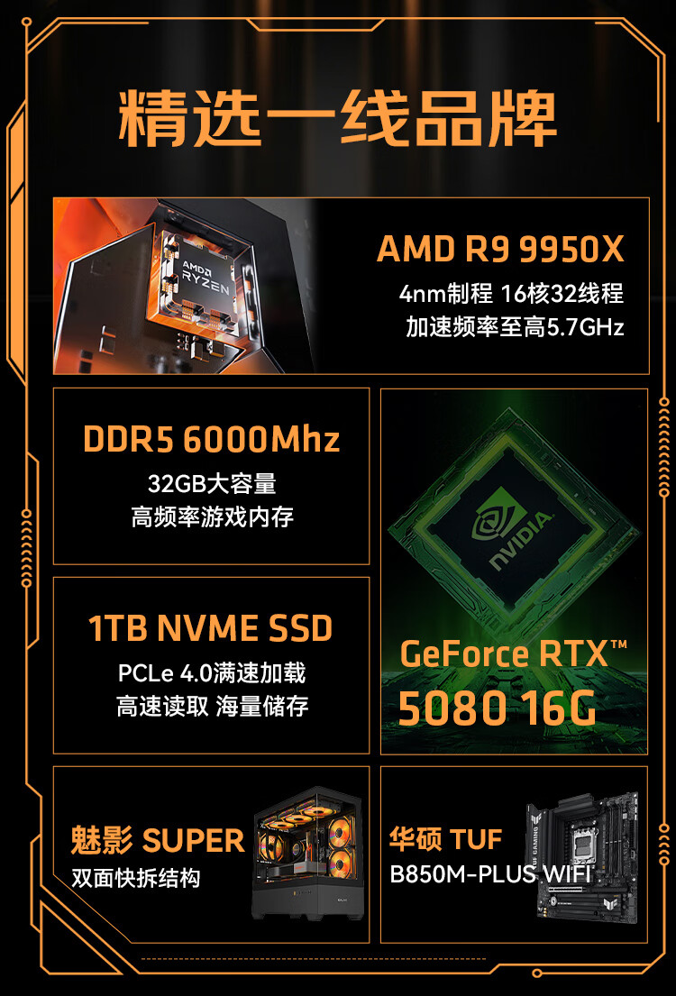 ASUS complete machine AMD Ryzen R9 9950X/RTX5070/5070Ti/5080 thousand frames e-sports game desktop host live broadcast AI creation DIY computing power large memory computer configuration 1 9950X barebone system without graphics card