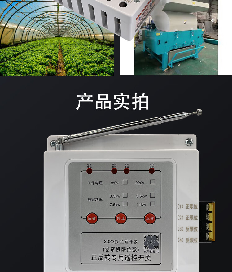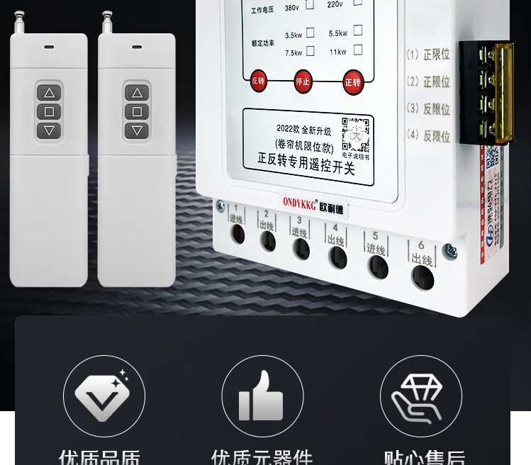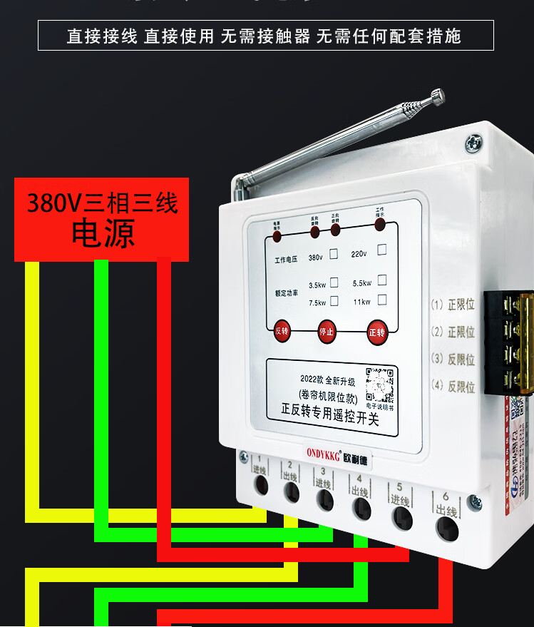 Onaid greenhouse roller shutter machine forward and reverse remote control 380v three-phase reverse motor forward and reverse with safety limit three-phase 3.5kw 1 km double remote control limit model