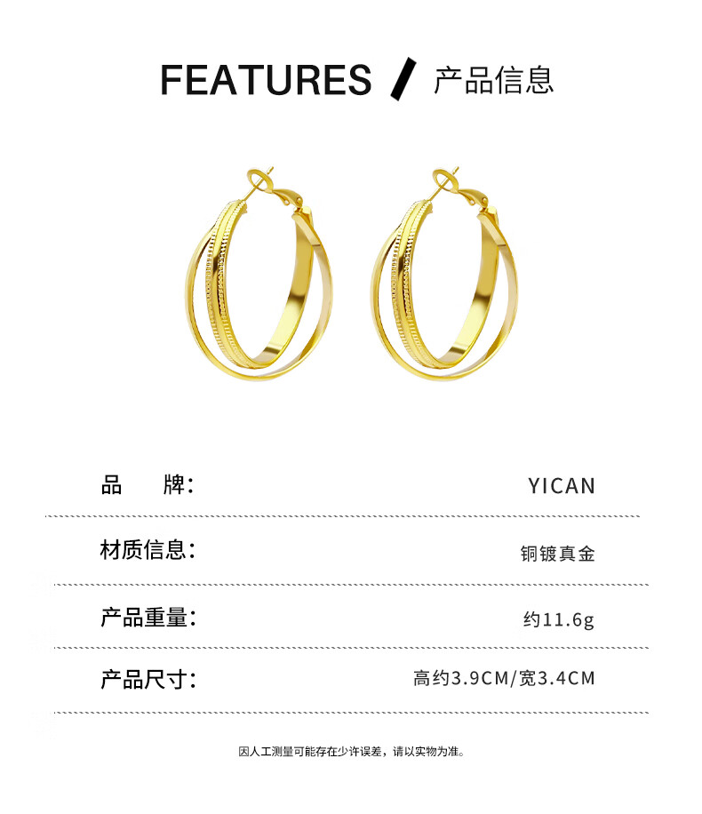 Yichan French style gold large hoop earrings women's niche design earrings earrings 2025 new hot style unique earrings gold large hoop earrings
