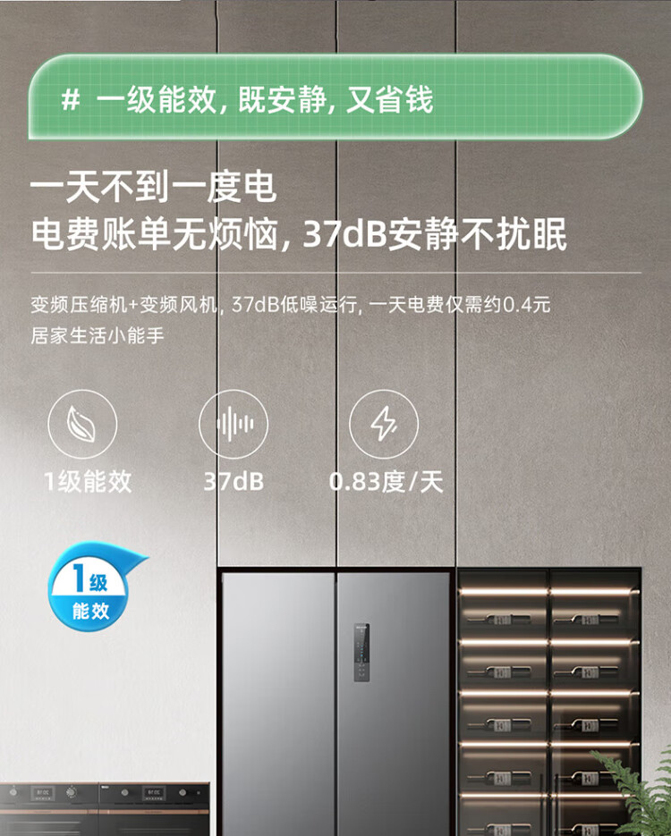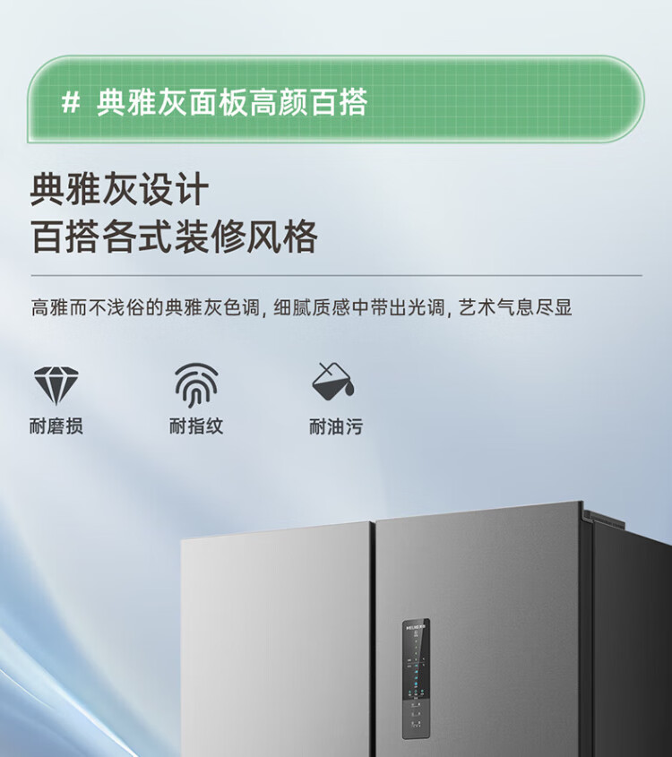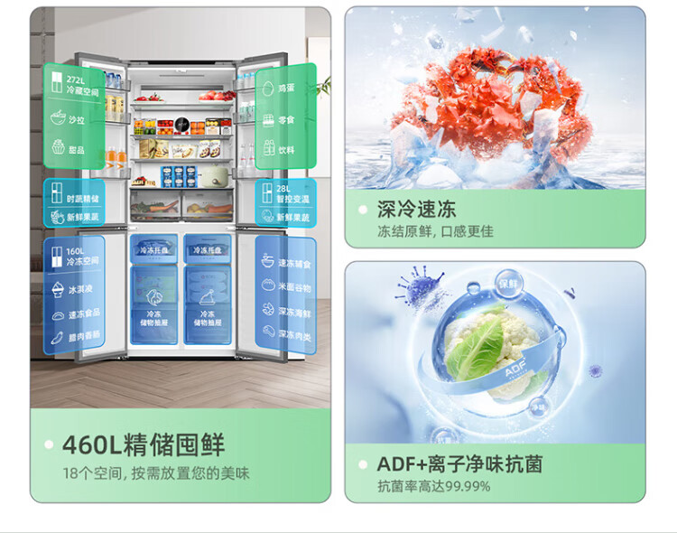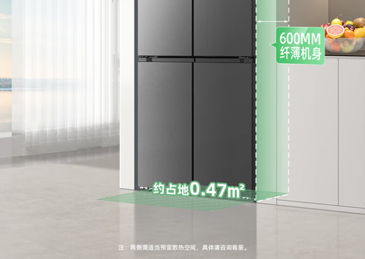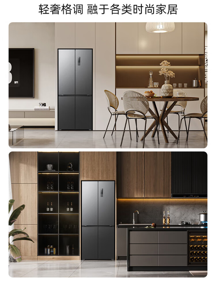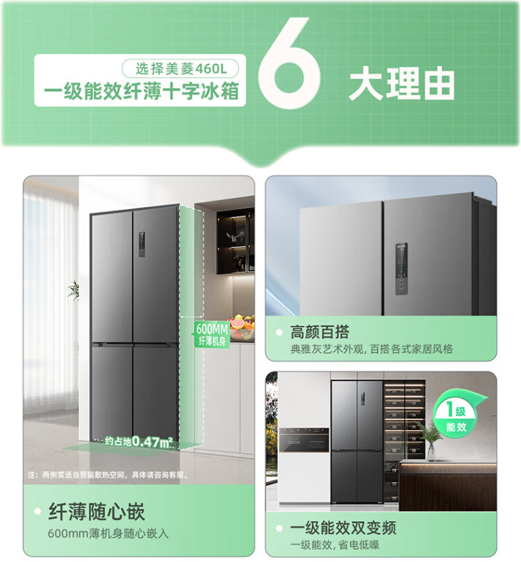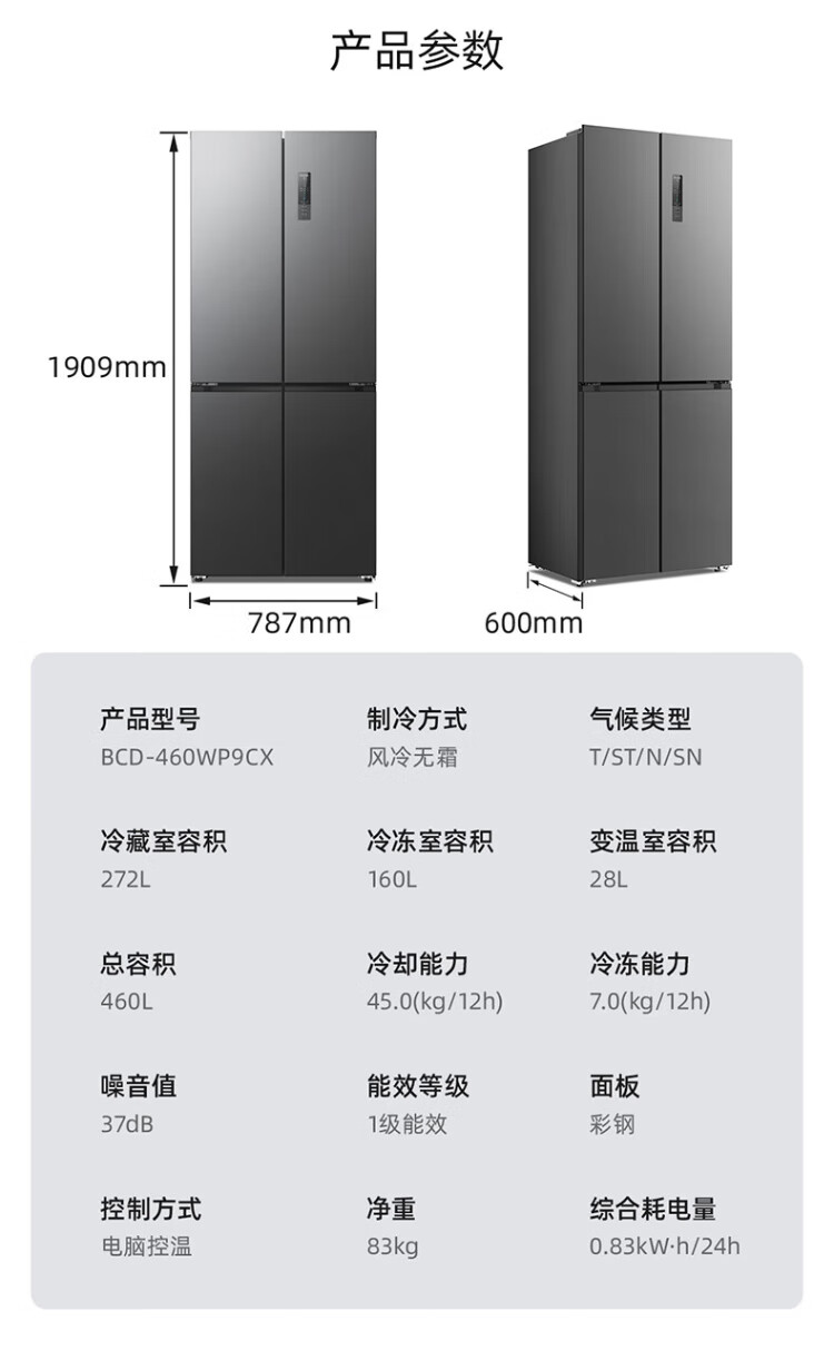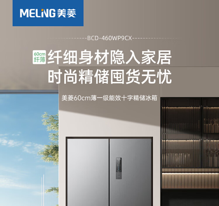 MeiLing Storage Refrigerator 460 liters cross-fold double-open four-door multi-door household large capacity 60cm ultra-thin embedded first-class energy efficiency air-cooled frost-free subsidy refrigerator BCD-460WP9CX Elegant Gray