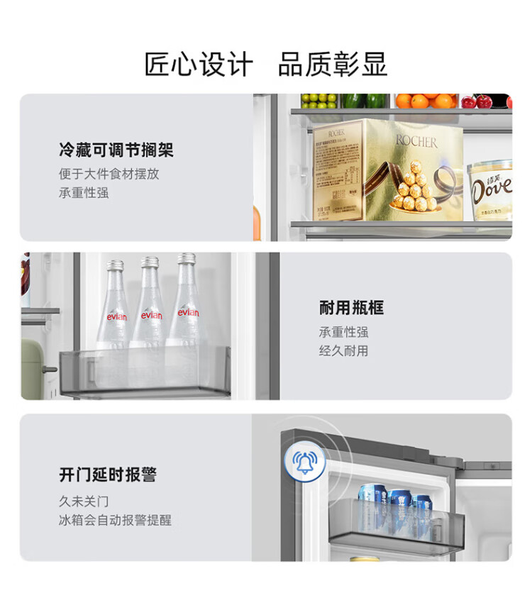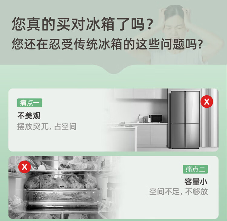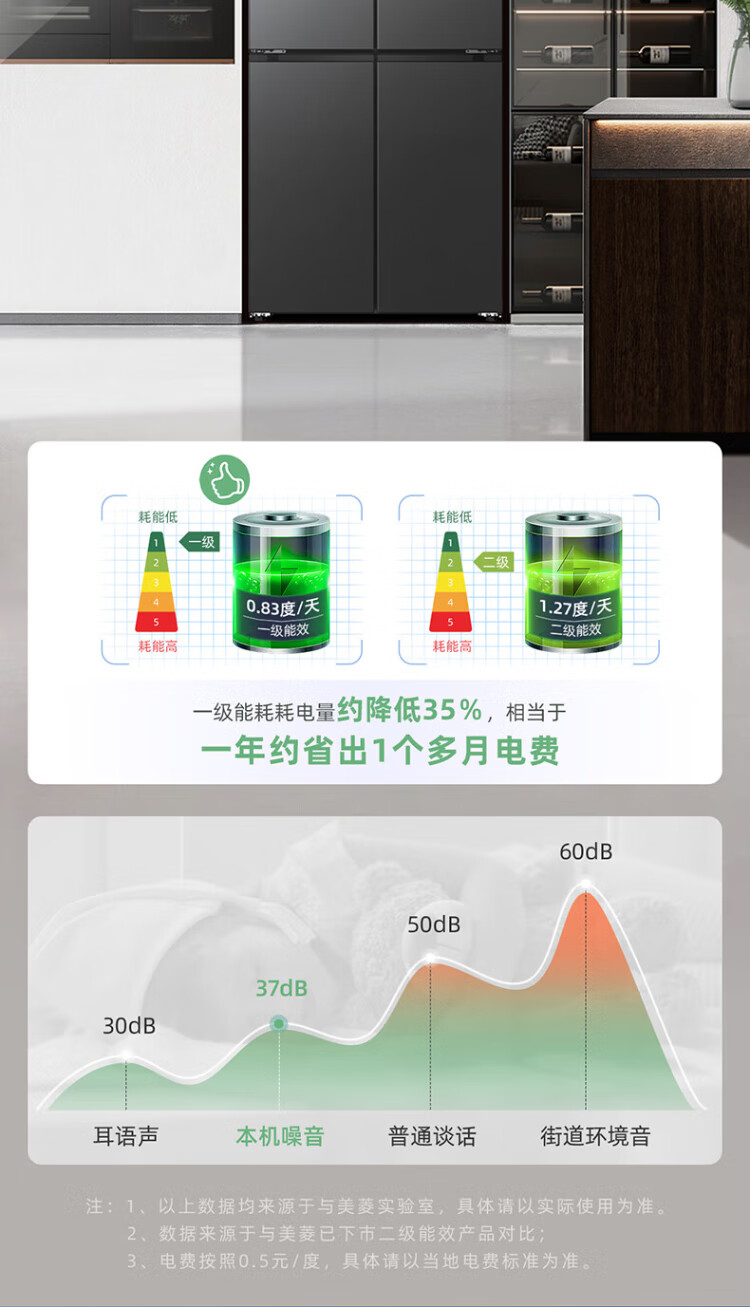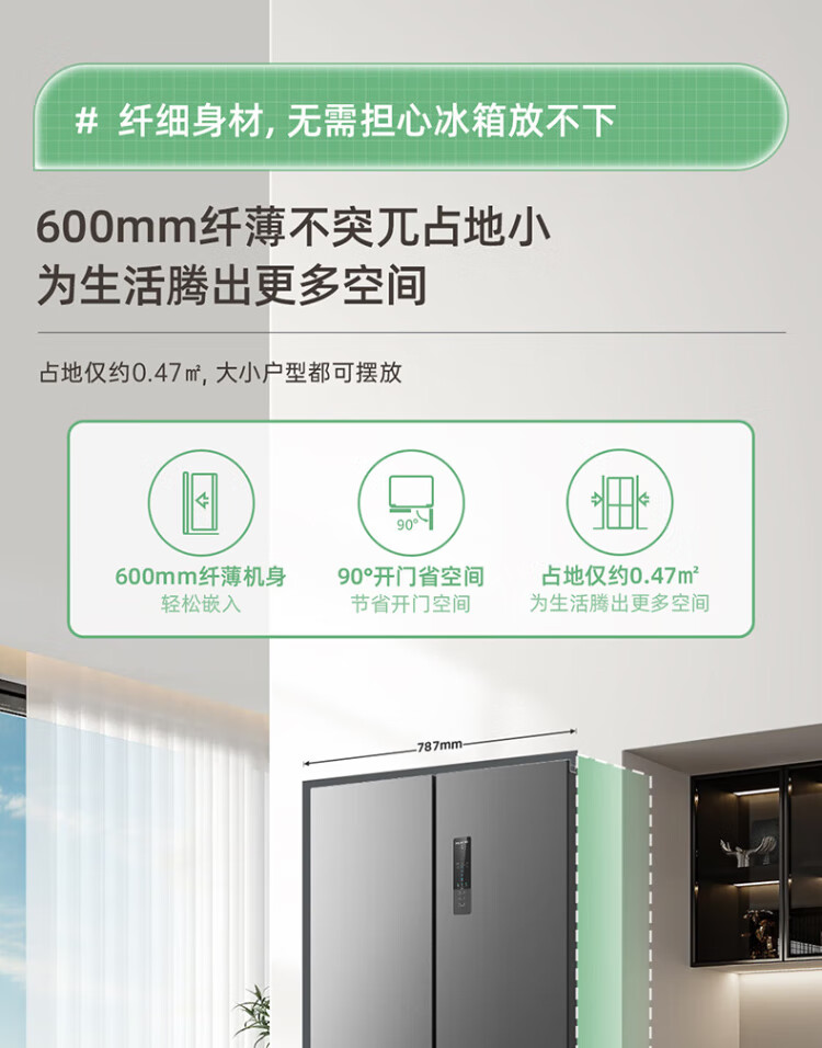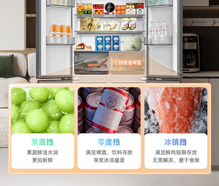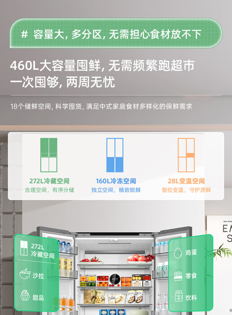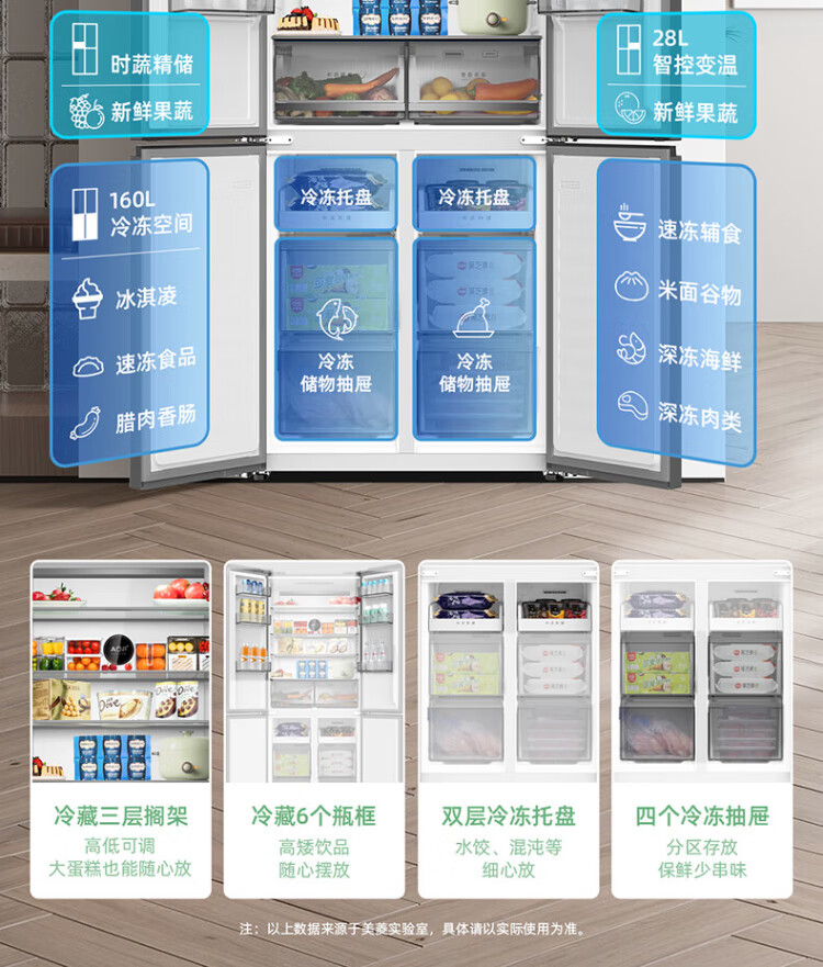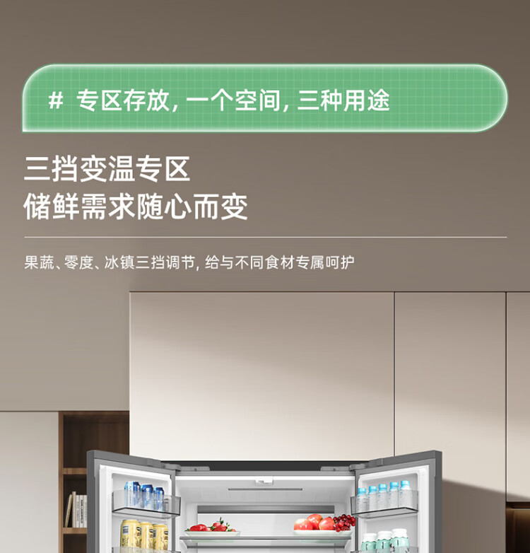 MeiLing Storage Refrigerator 460 liters cross-fold double-open four-door multi-door household large capacity 60cm ultra-thin embedded first-class energy efficiency air-cooled frost-free subsidy refrigerator BCD-460WP9CX Elegant Gray