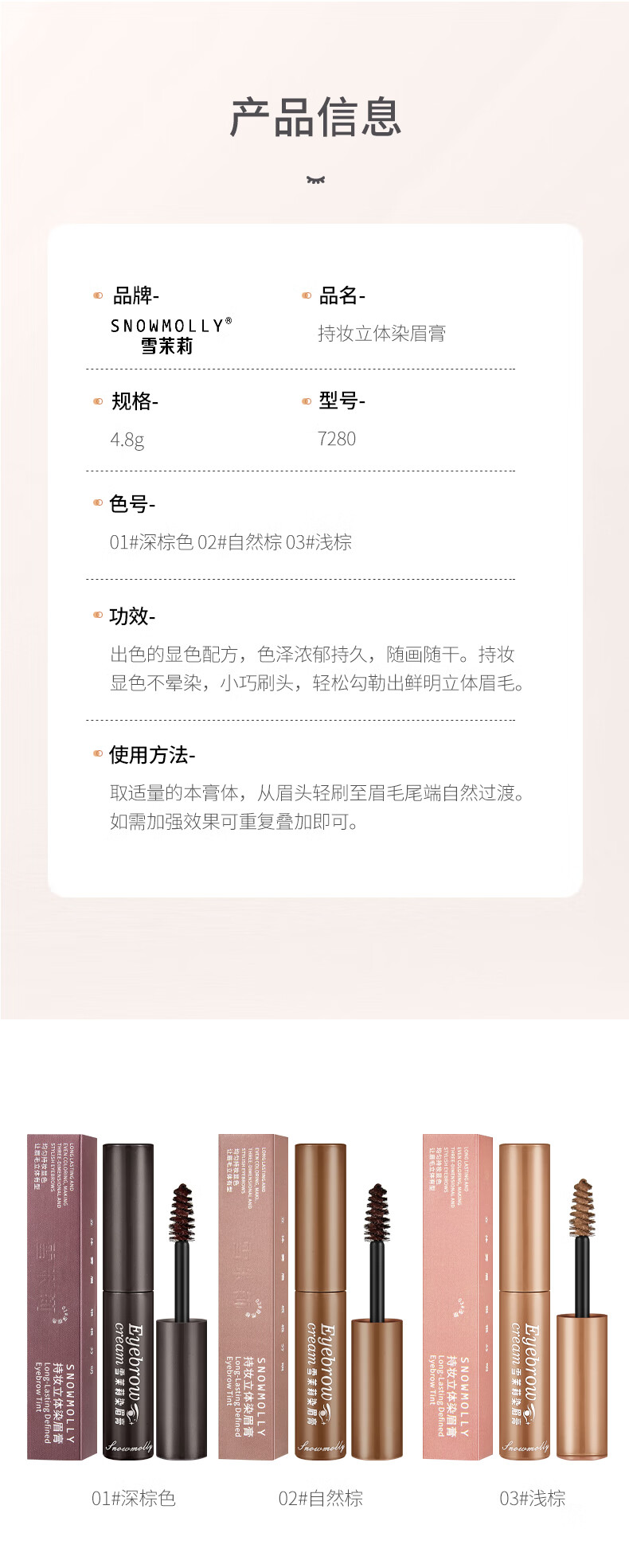 Snowmolly long-lasting three-dimensional eyebrow dye waterproof and sweat-proof color-producing eyebrow pencil with clear eyebrows natural brown + light brown