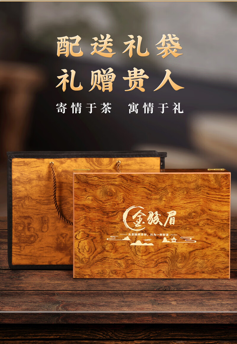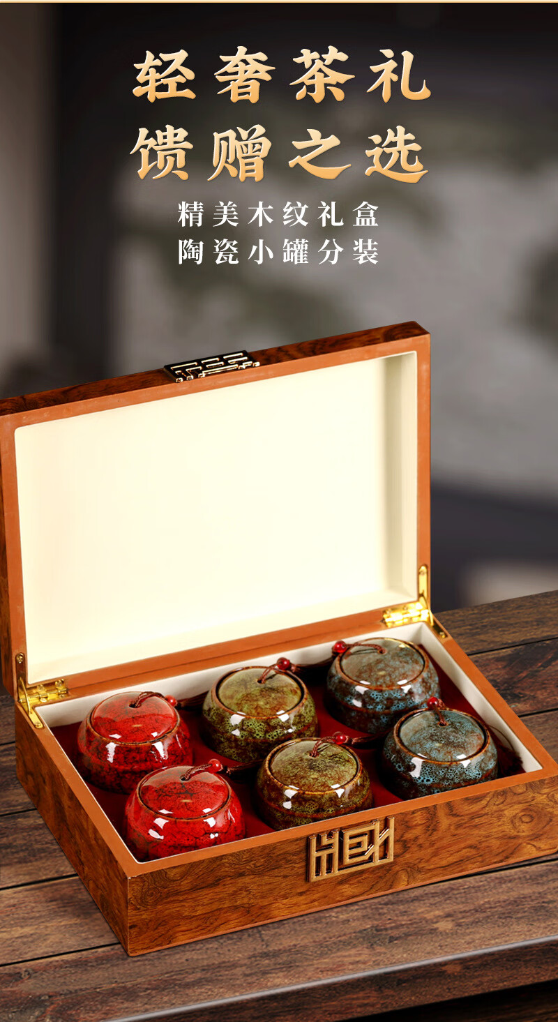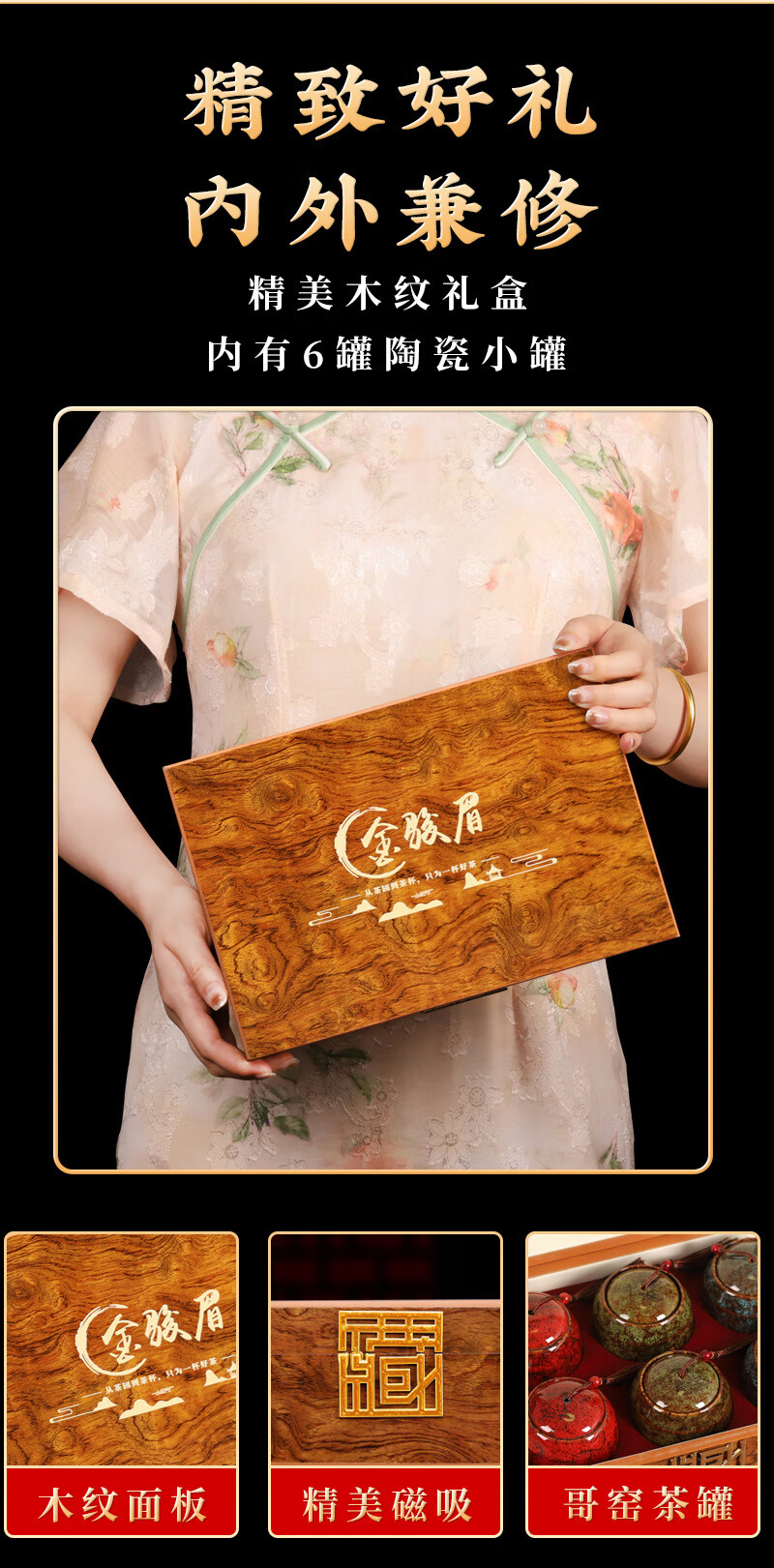 Gugentang Jinjunmei Black Tea Wuyishan Tea Gift Box High-end Lapsang Souchong Wholesale Gifts Six Ceramic Jars Classic Wooden Box Jinjunmei