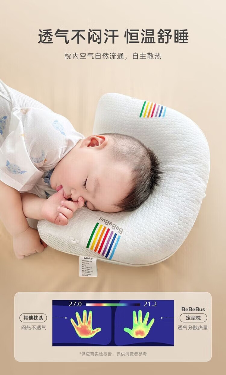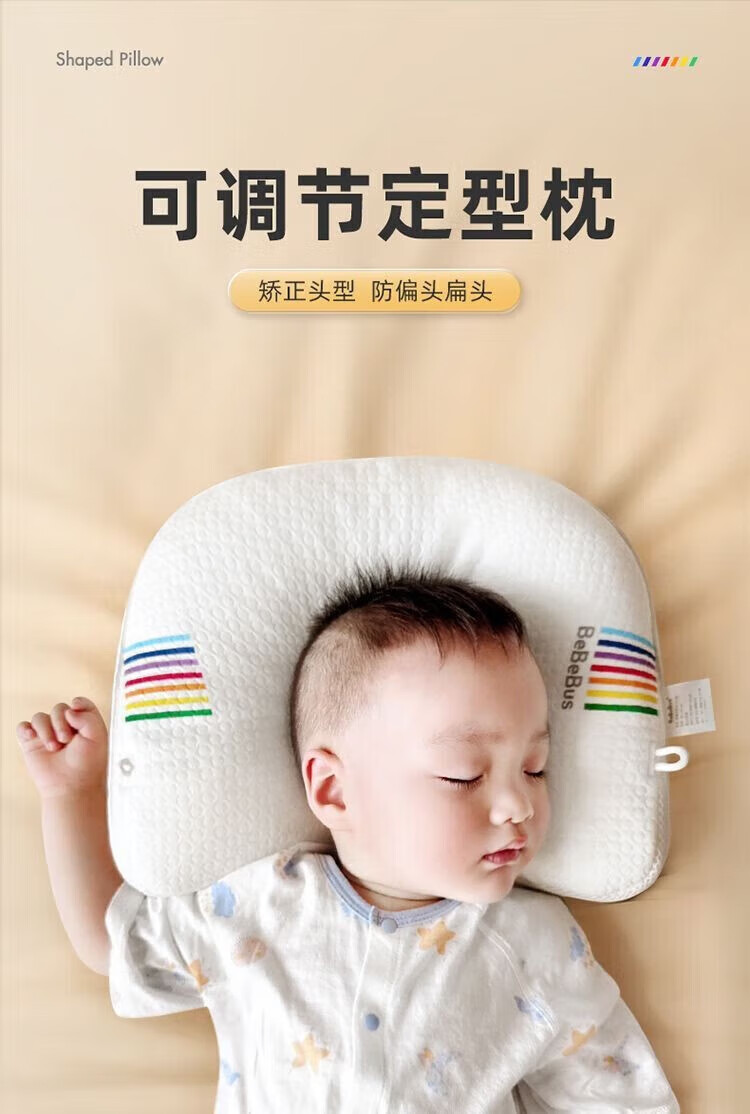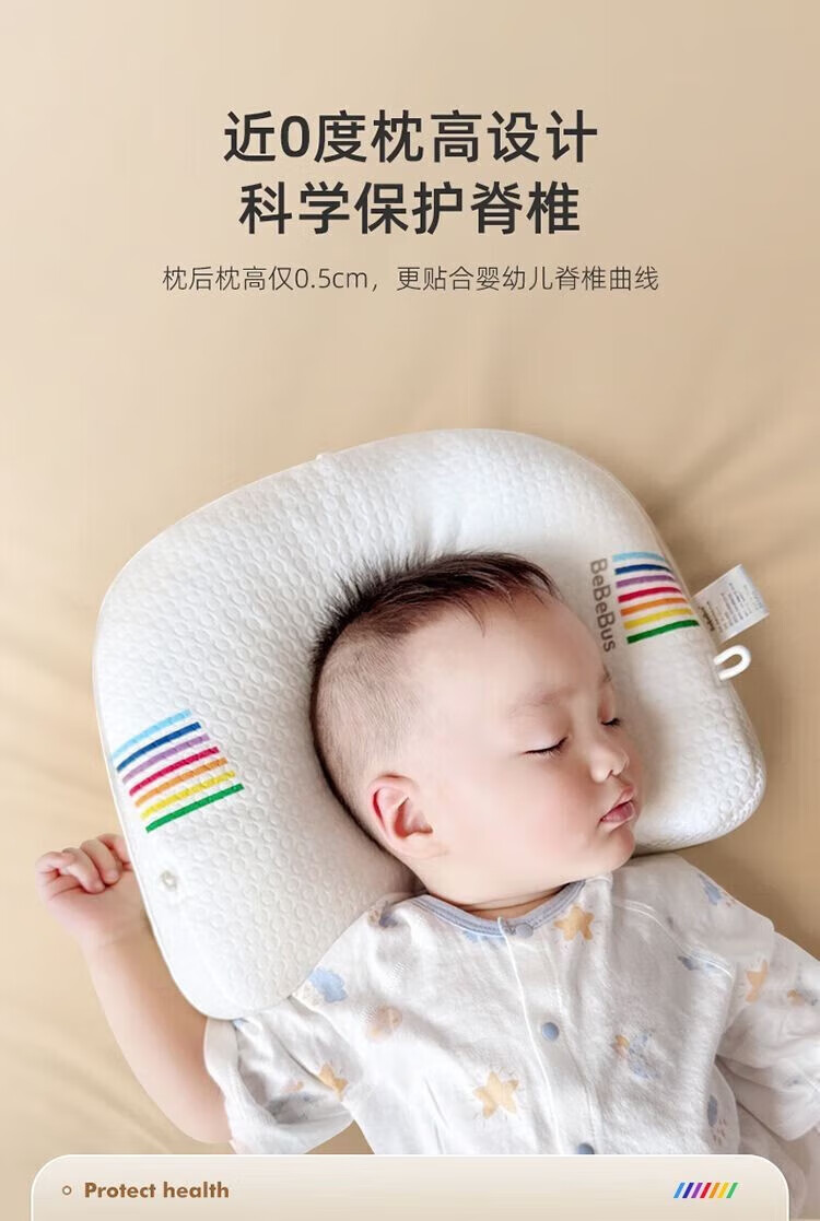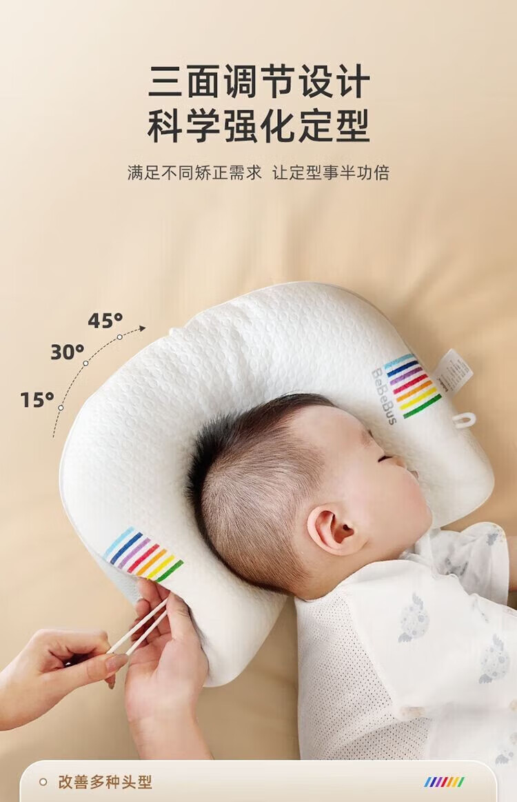 Bebebus Baby Pillow Newborn Children Correct Head Shape 0-3 Years Old Baby Styling Pillow All Seasons Anti-Mild Head Upgraded Antibacterial Model 0-3 Years Old