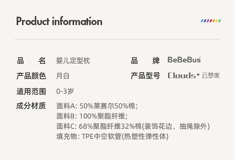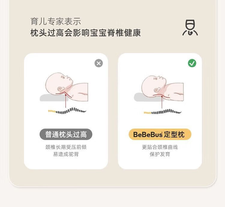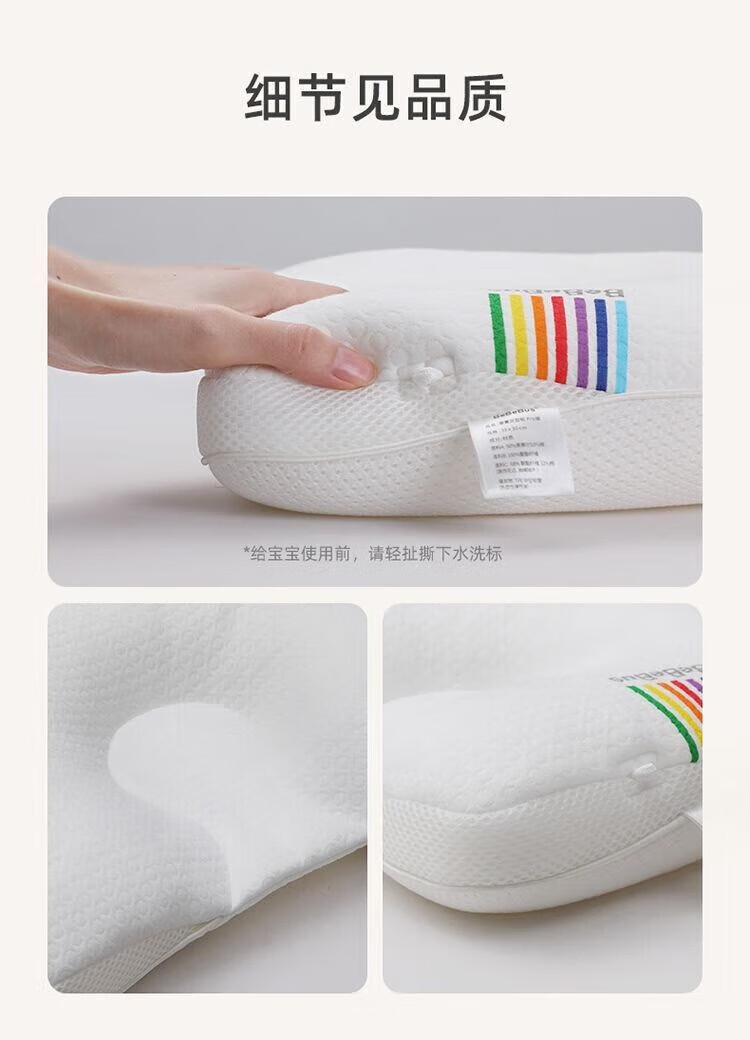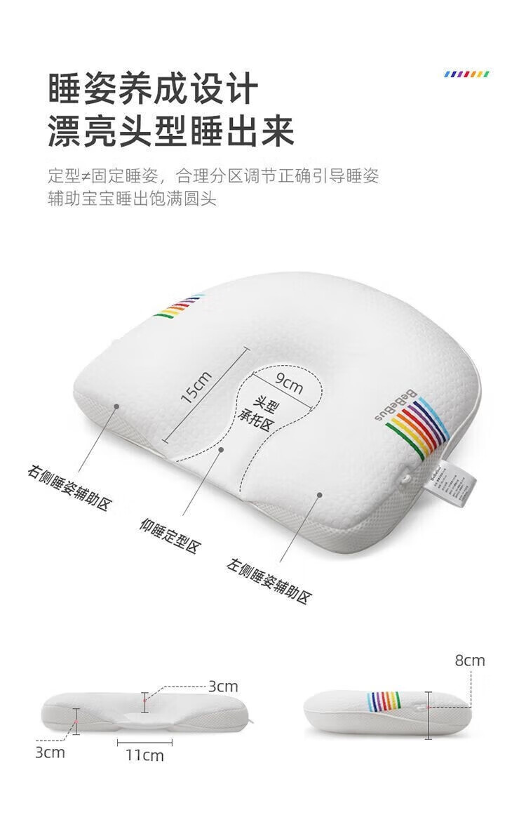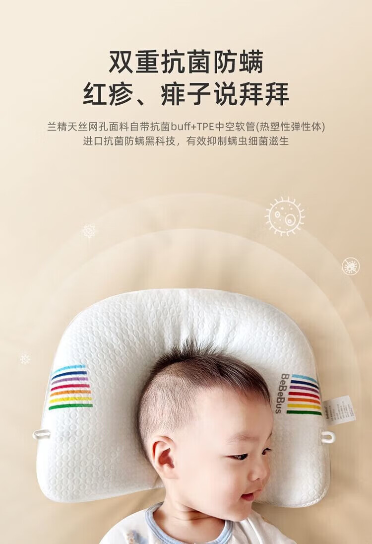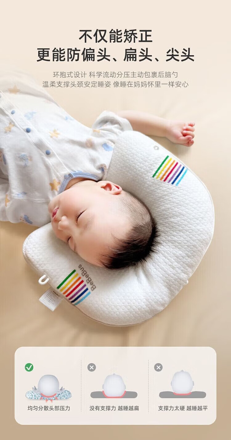 Bebebus Baby Pillow Newborn Children Correct Head Shape 0-3 Years Old Baby Styling Pillow All Seasons Anti-Mild Head Upgraded Antibacterial Model 0-3 Years Old